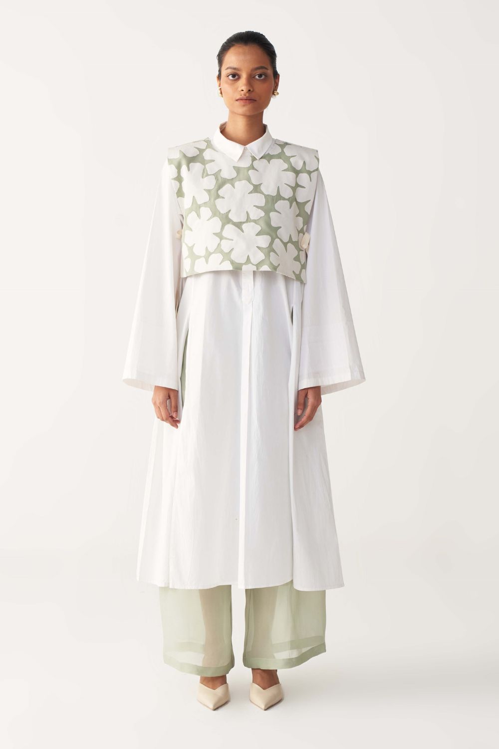 Product Type: FLORAL CROP OVERLAY + PANEL SLIT SHIRT + HIGH WAIST PANEL BROAD BOTTOM