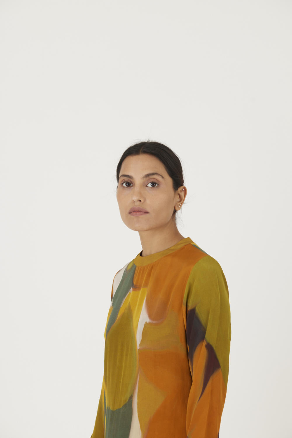 Priya takes her art and places it on garments that slip seamlessly into wardrobes around the world — dresses, blouses, scarves, and sarees that carry a certain versatility: expressive without being loud, contemporary without losing cultural nuance.