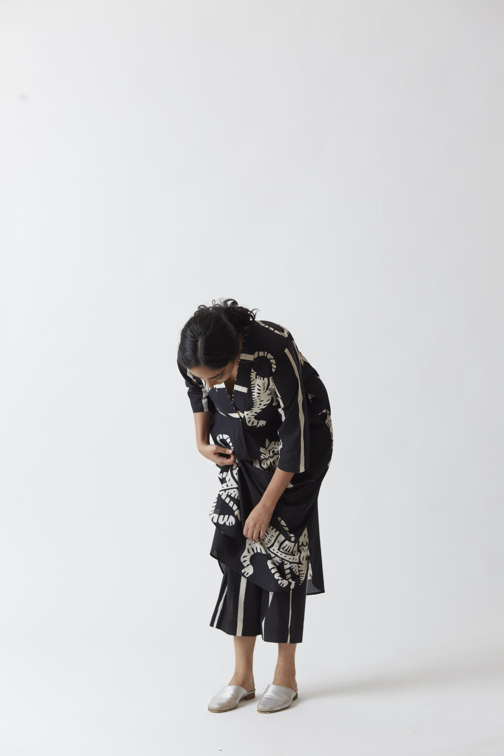Priya’s strength lies not just in the imagery she creates, but in how she translates it onto silhouettes that honour real bodies. Her pieces are designed with ease and movement in mind — styles that drape, soften, and adapt effortlessly across sizes and shapes. Nothing feels intimidating; everything feels wearable.