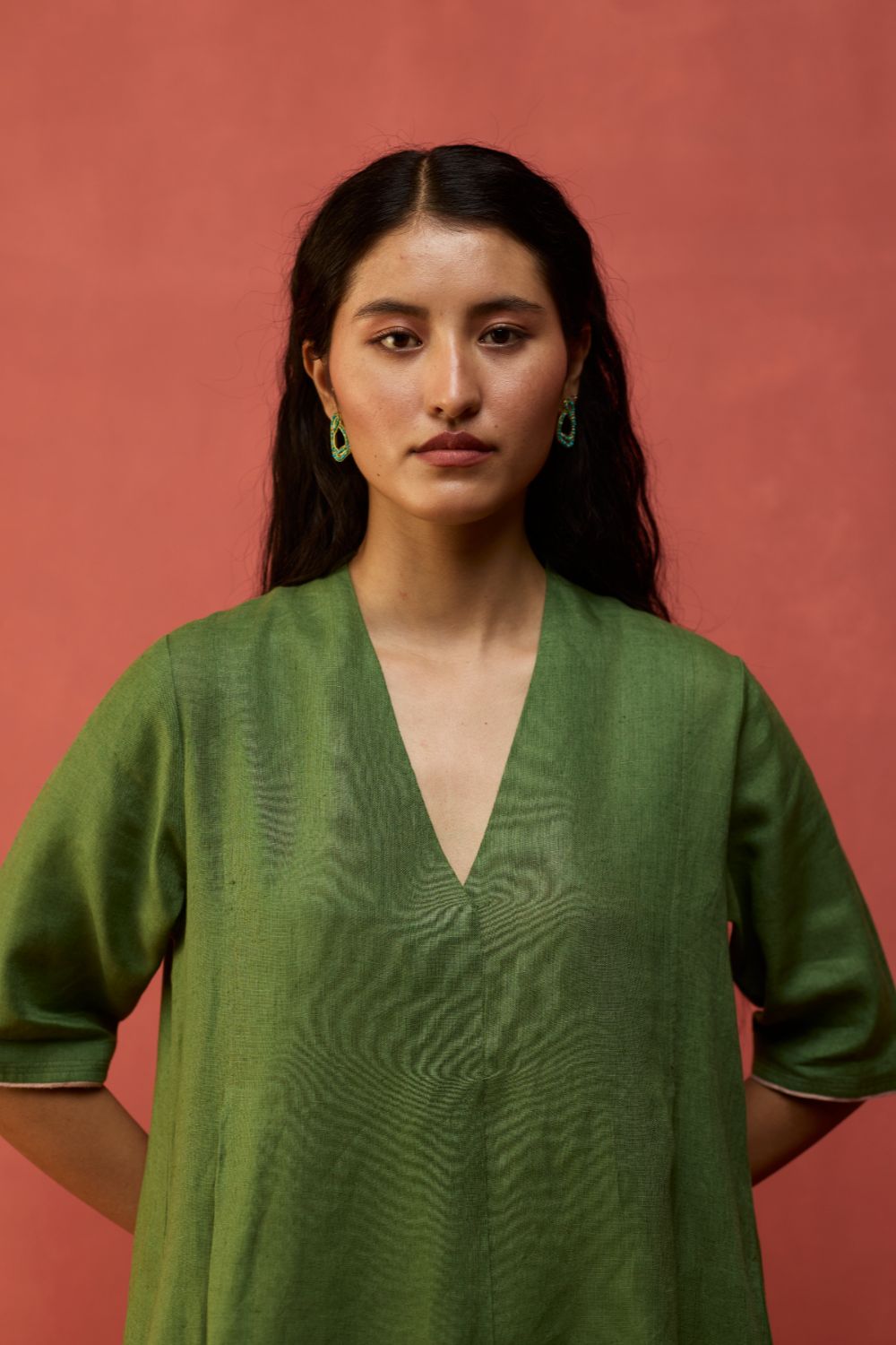 Their signature linens soften beautifully with time, eventually returning to the earth. They work with eri (ahimsa) silk, celebrated for its strength and gentle texture, and craft thoughtful blends of viscose, cotton, silk, and linen for pieces designed to last. Yarn-dyed techniques minimise chemical use and create the subtle, heathered tones that have become a quiet Manan signature.