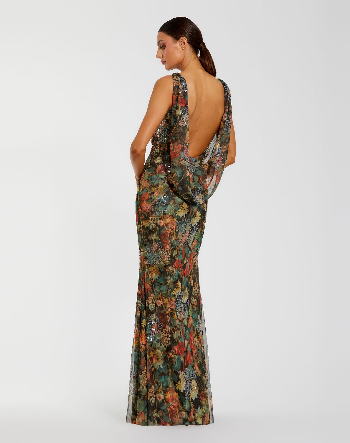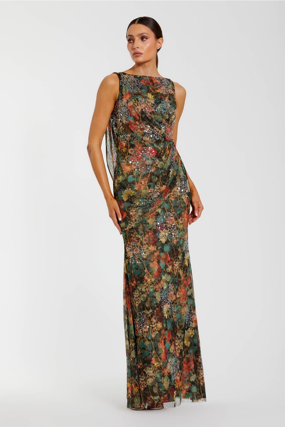 Multicolor Floral Embellished Column Gown