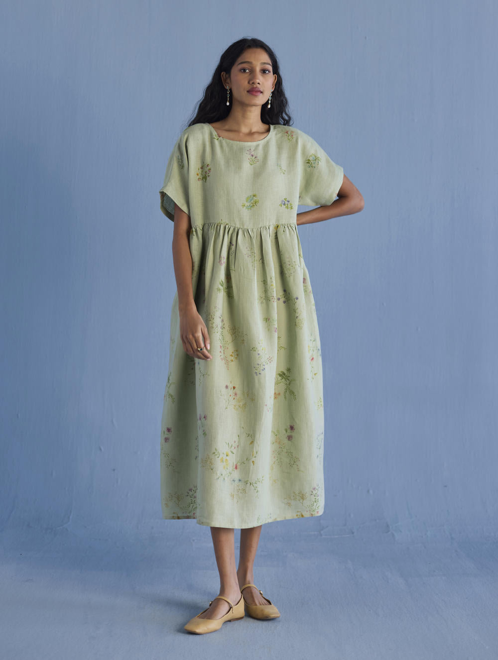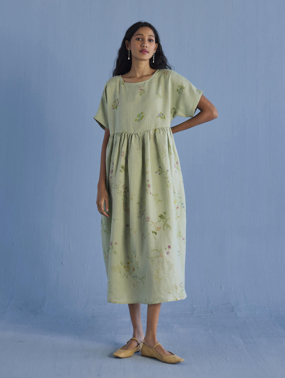 A timeless and easy-to-wear soft sheer linen dress designed with a soft timeless hand-painted floral print, pockets and intricate pleat details at the back for easy movement and style. The dress can be worn over any plain linen or cotton dresses that are part of your wardrobe. Perfect for balmy summer days.