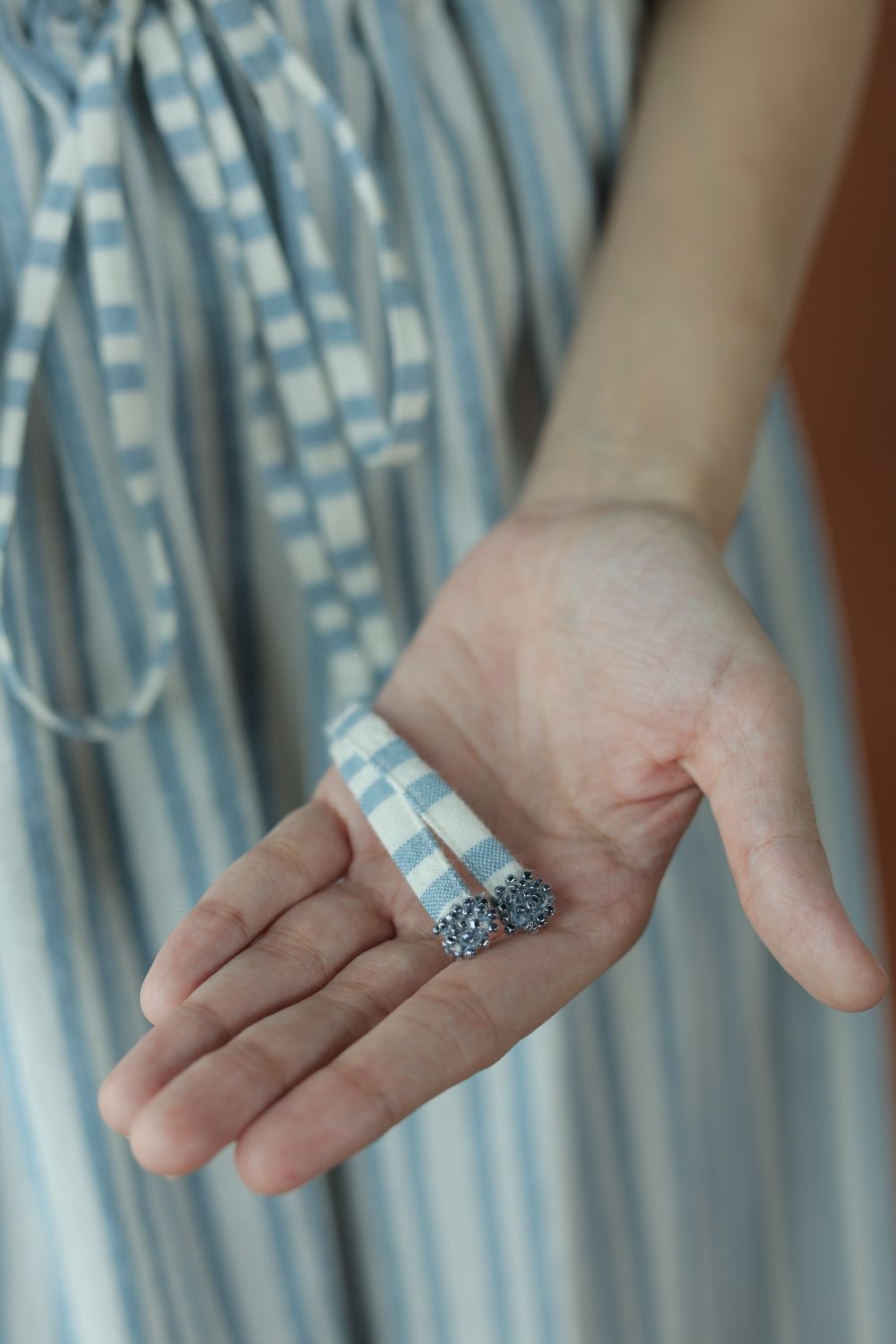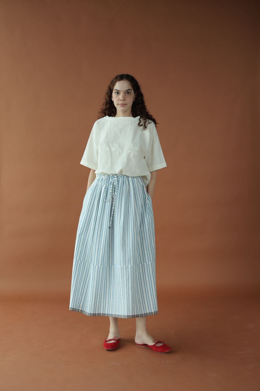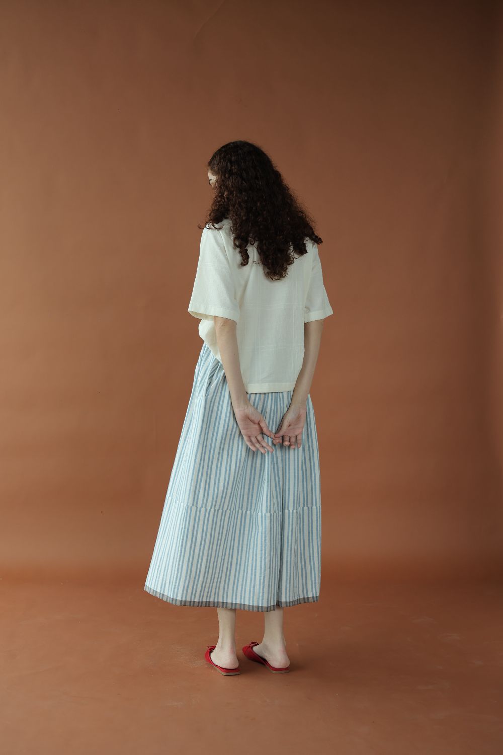 Delphi' - Handwoven suummer blue stripes turned into a free-size skirt, with a drawstring that runs along the waist to fasten to your size.