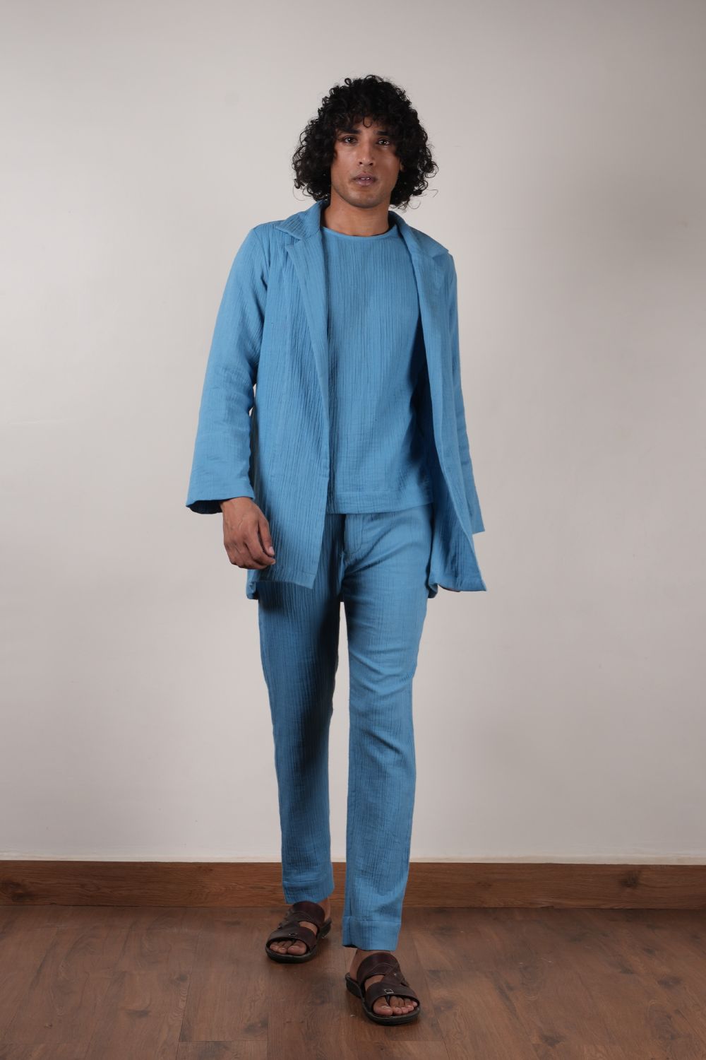 A comfort fit t-shirt with side shoulder zipper opening and extended sleeves comes with crush cotton pants and crush jacket all made in 100% natural cotton. Total 3 pcs.