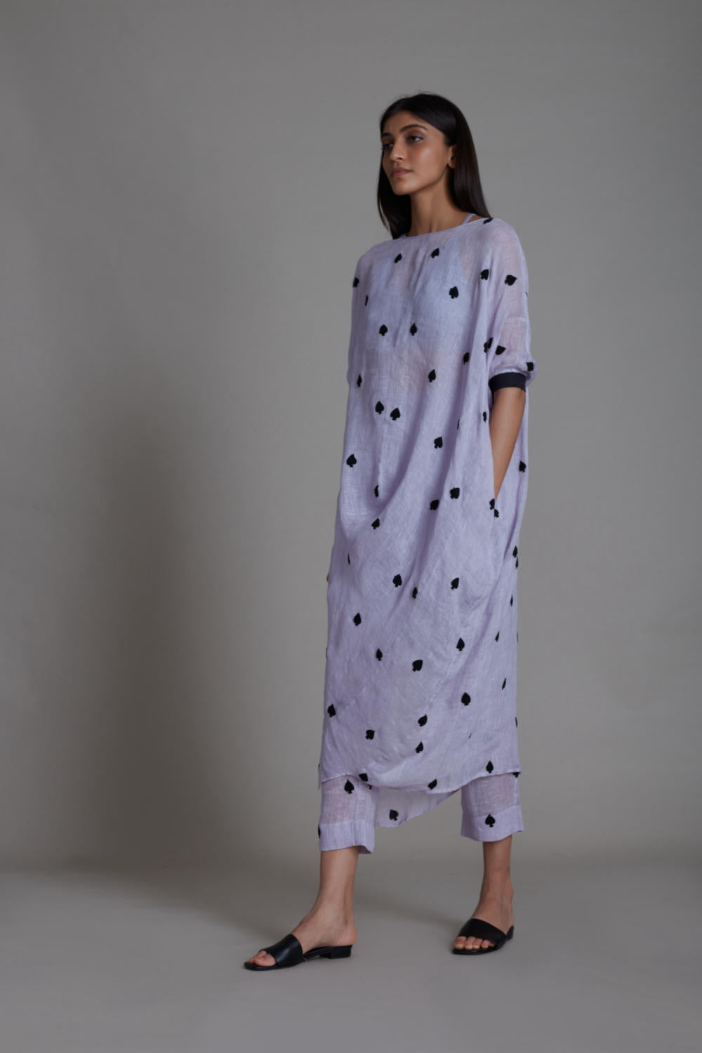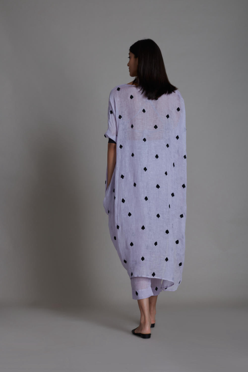 Our classic draped cowl silhouette !! the embroidery on linen gives it a festive feel and the ribbed sleeve round and side pockets give it a comfortable touch!! A perfect pick for your Diwali parties !!