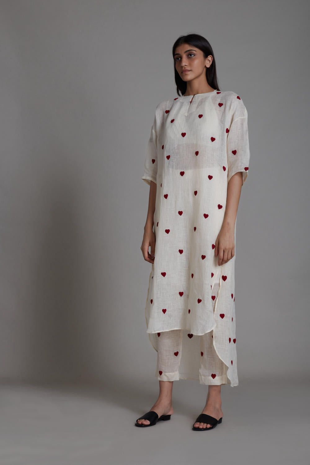 This tunic set is all that you need for daytime festivities. The apple cut detailing on the kurta brings elegance and class to the outfit. Pair this set with statement earrings and potli bag to complete the look. (SET OF 2, TUNIC AND PANTS, handwoven cotton bralette inner comes with the set)