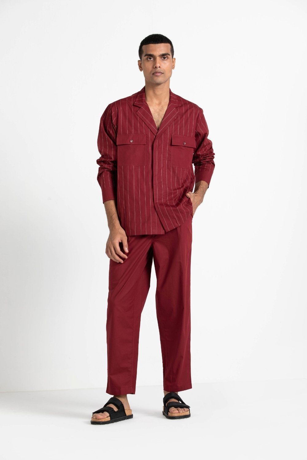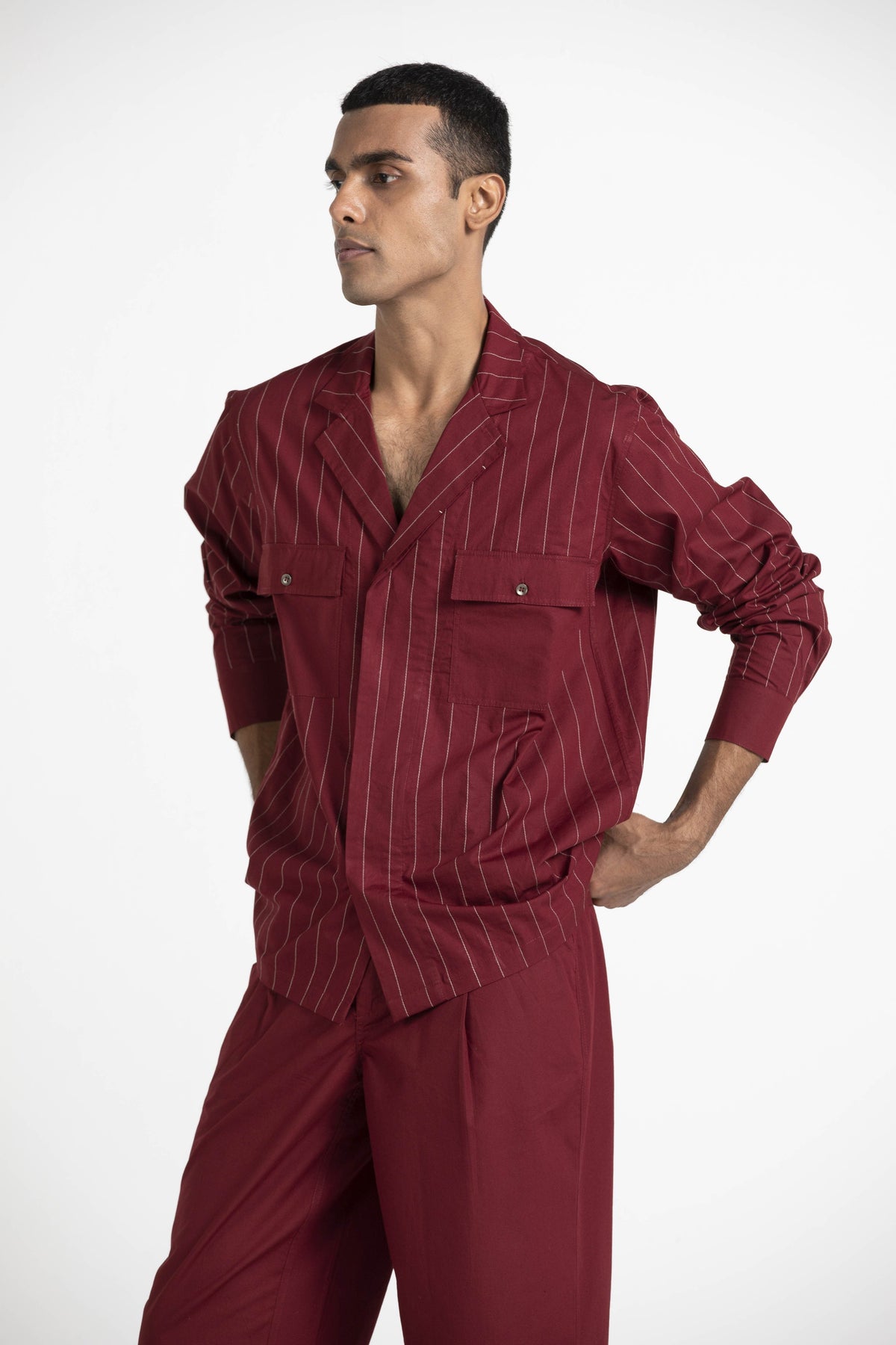 Notch Collar Embroidered Shirt Co-ord Men THREE