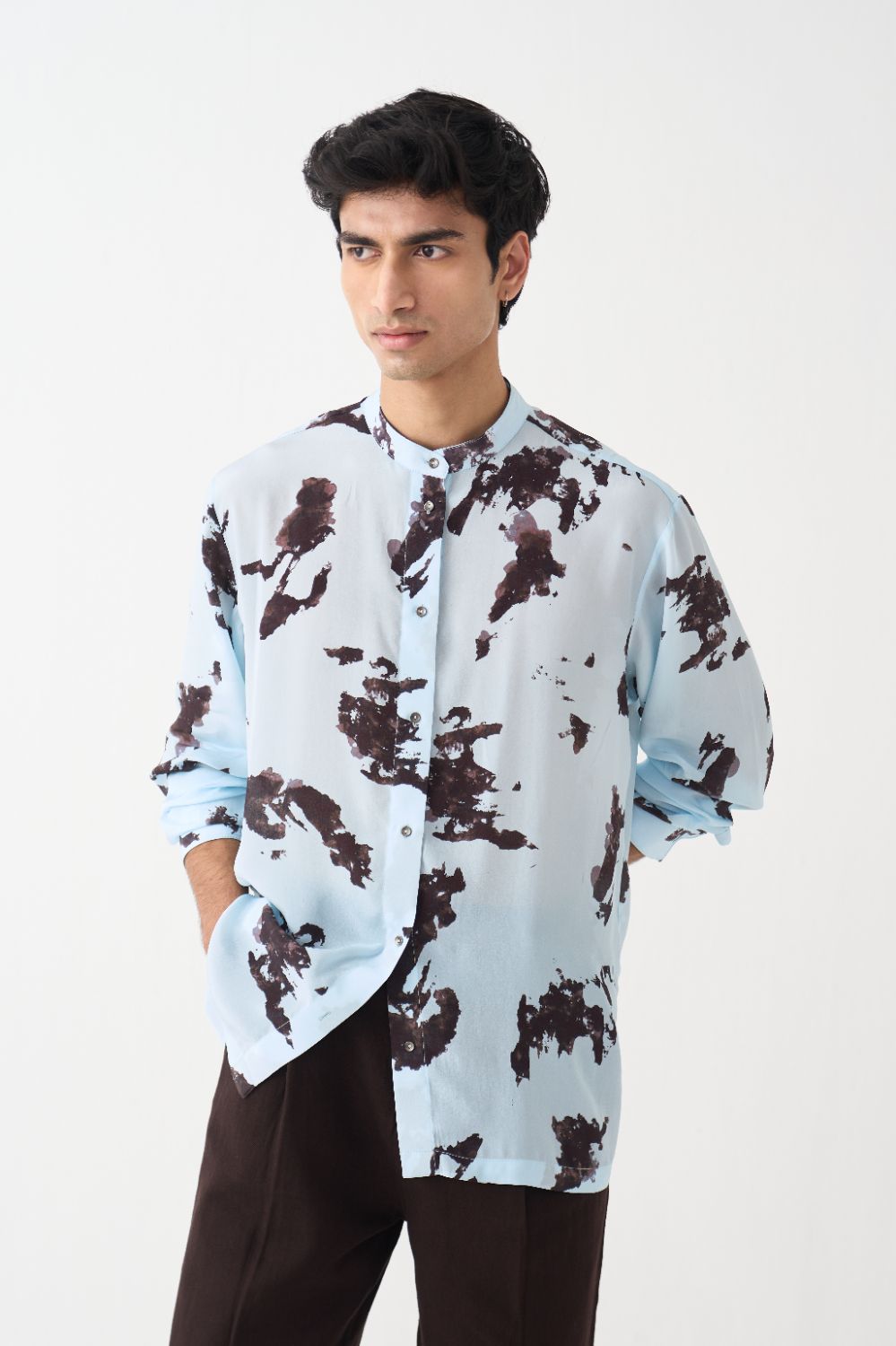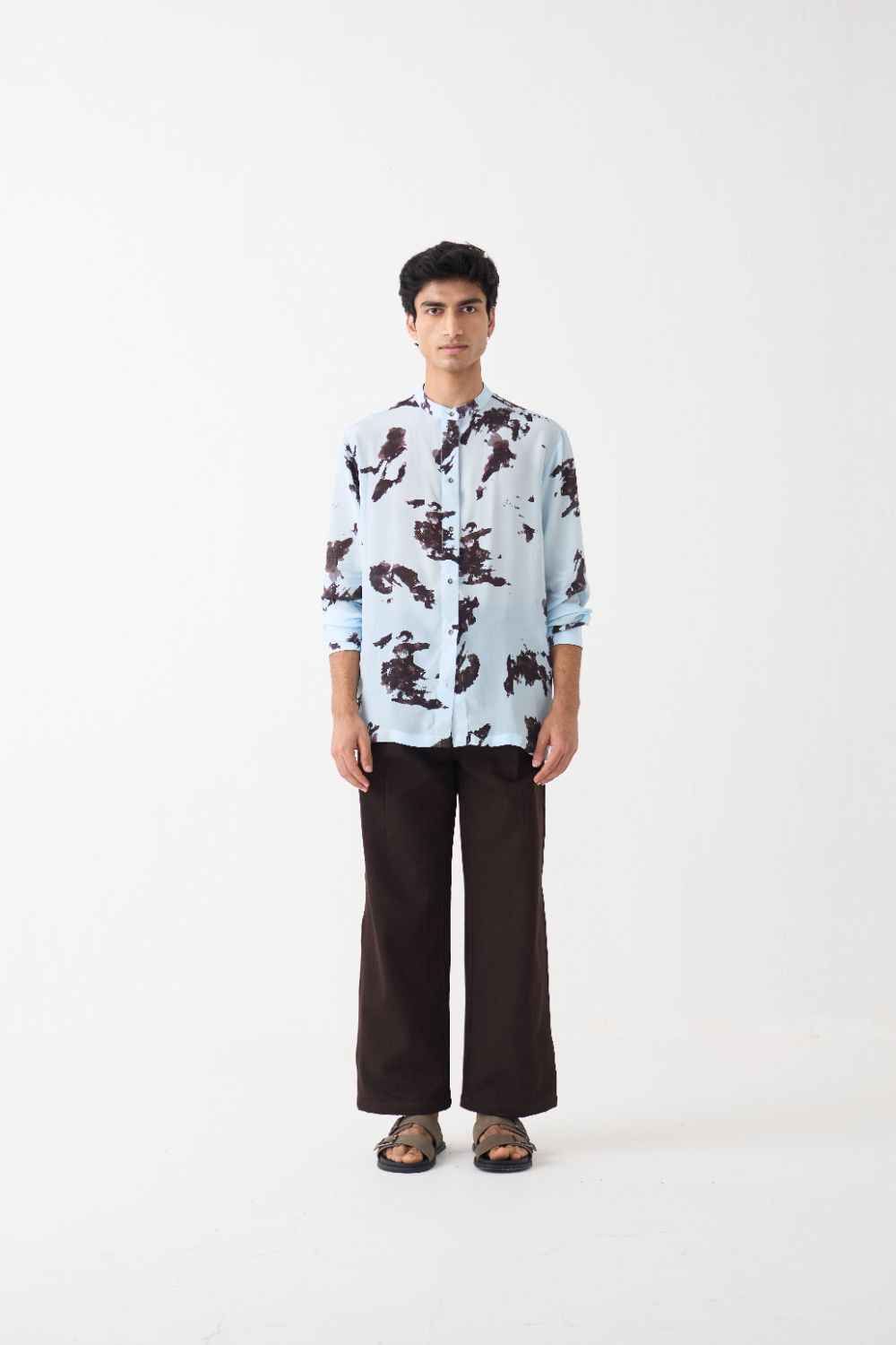 Band Collar Printed Shirt Co-Ord - Dark Brown