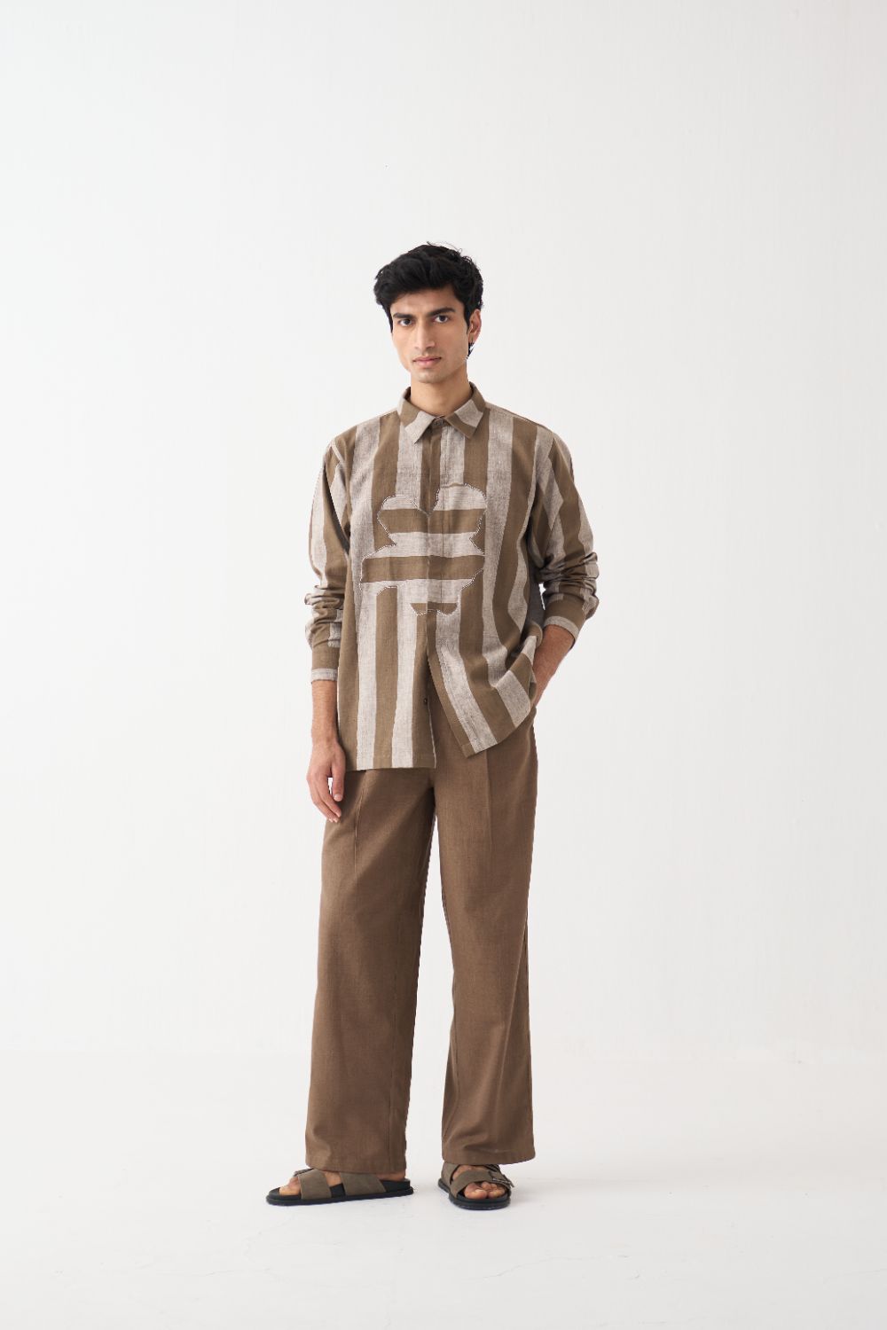 Stripe Floral Applique Shirt Co-Ord - Cedar