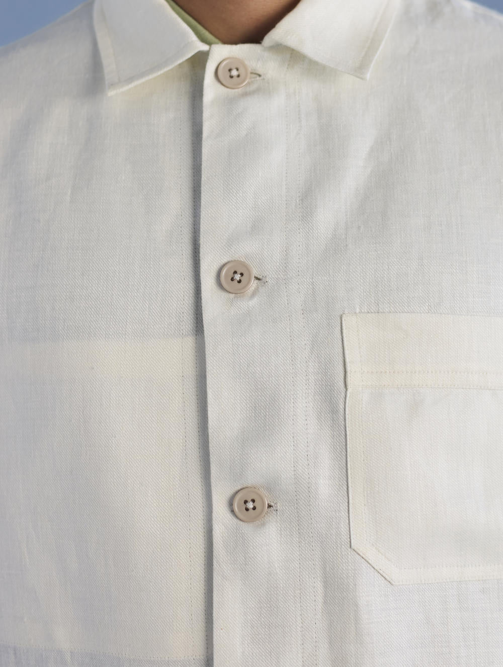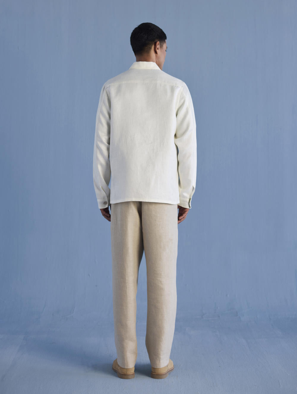 A classic shirt jacket in a heavy weight twill weave yarn-dyed linen with statement pockets finished with hand-dyed buttons and contrast floral printed facing inside. The Ansh Linen Jacket has a hidden pocket on the inside. One of our favourite jackets to wear from the spring to early winters.