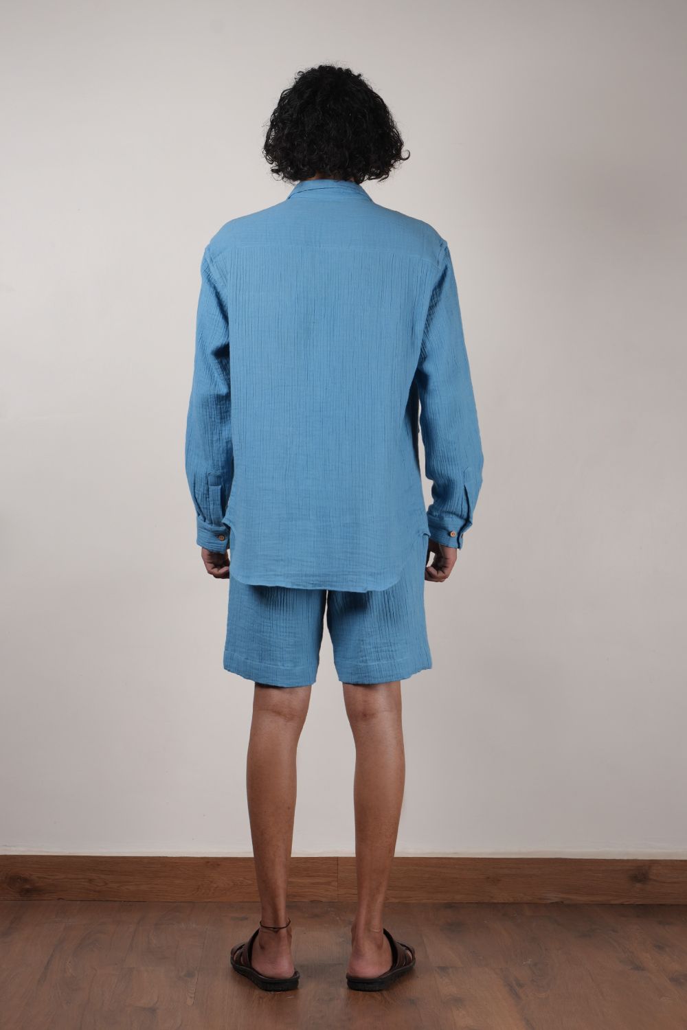 Men's Crush Cotton Blue Shawl Jacket
