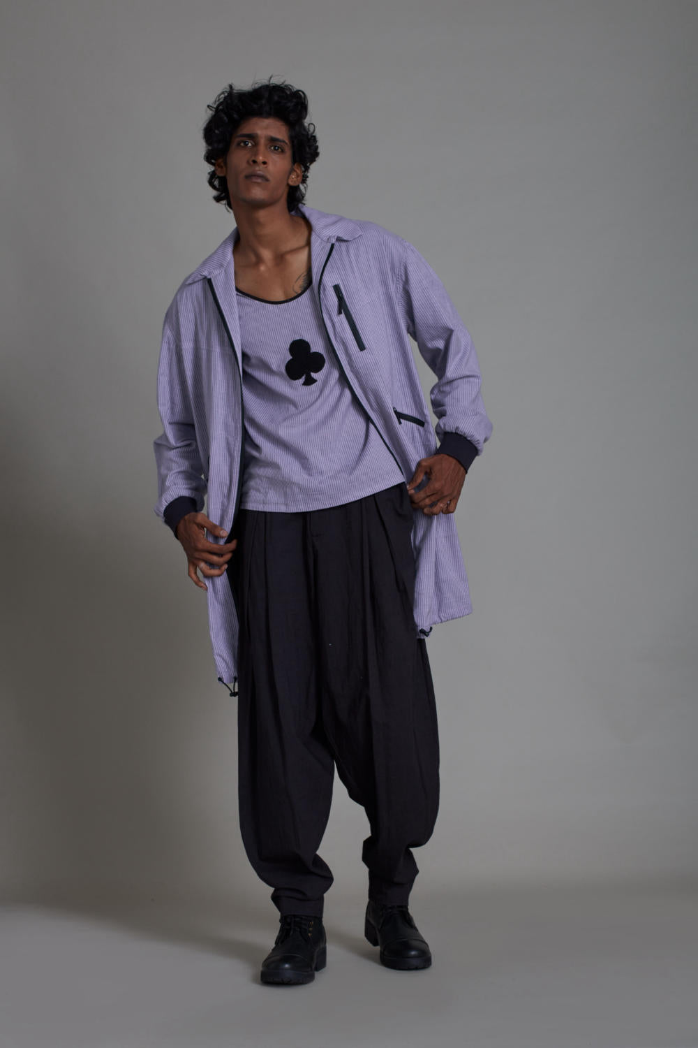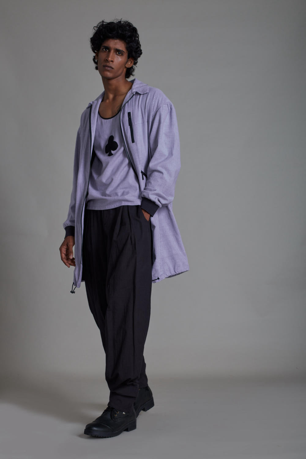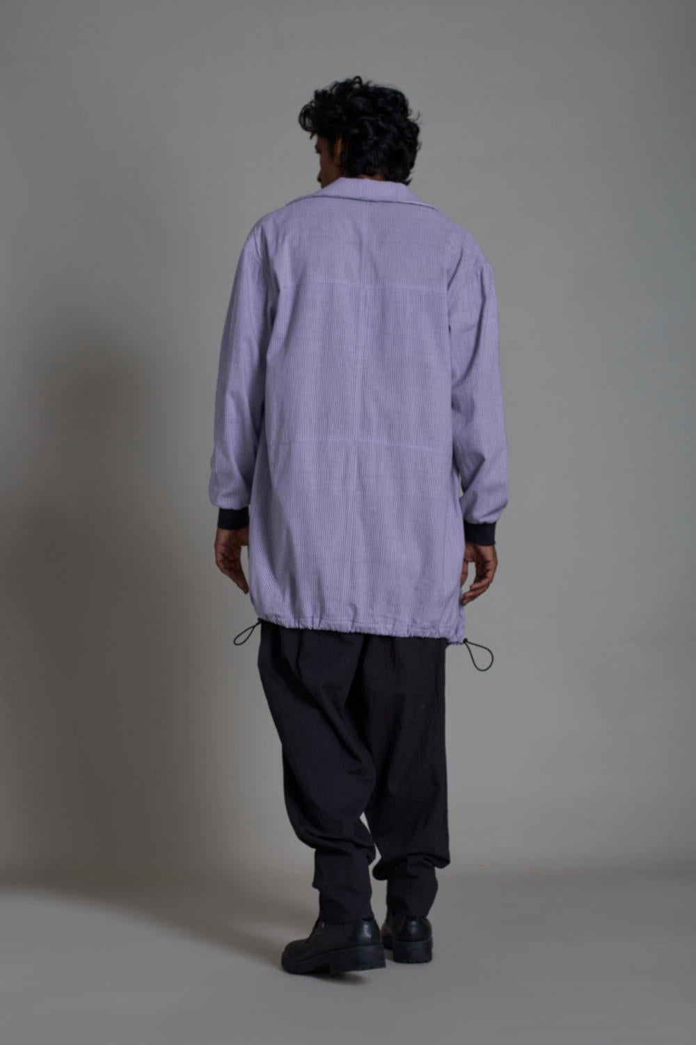 JACKET: Elevate your casual look with this jacket. It is exclusively made in hand woven striped cotton and features three functional front pocket.