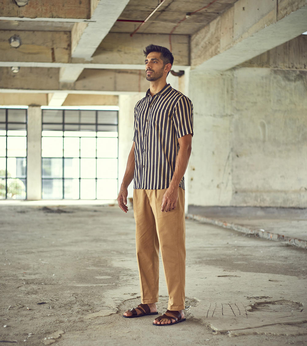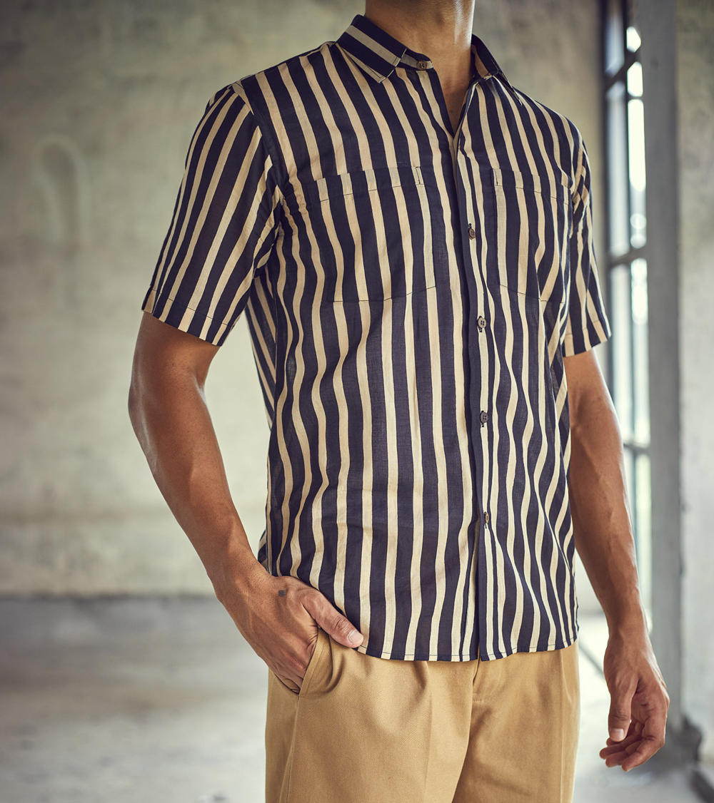 A classic regular fit black and white striped cotton shirt. The soft and breathable fabric construction allows day-long comfort.