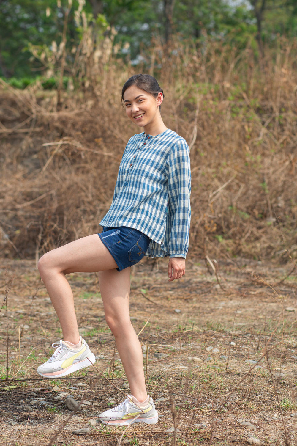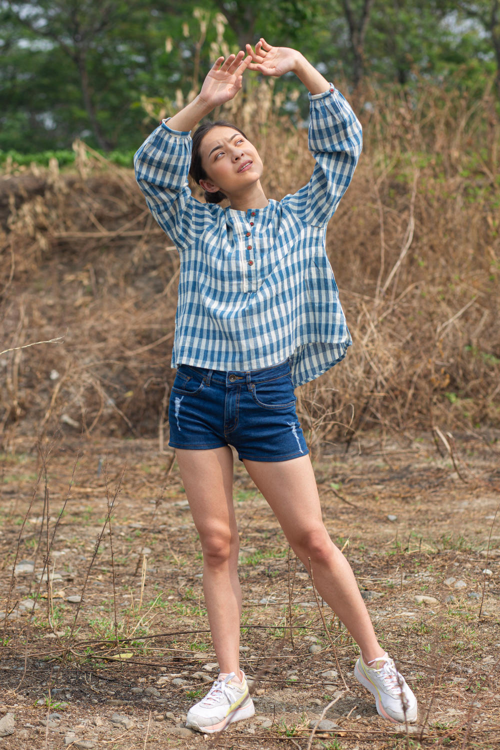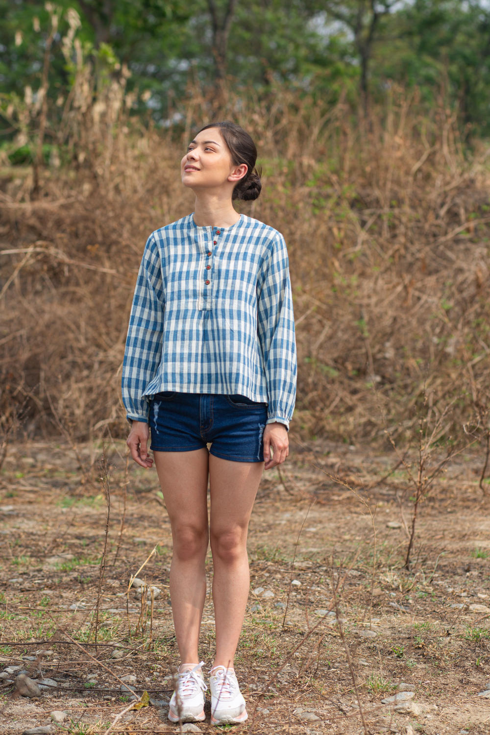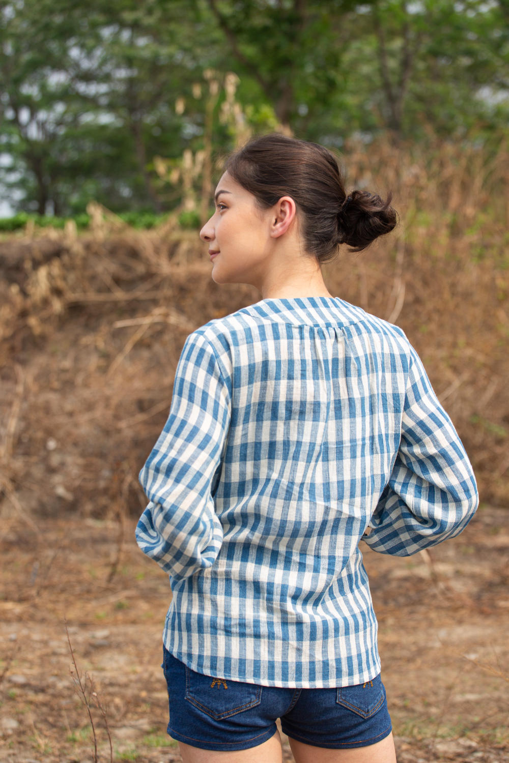 A statement blouse with big personality and an easy going silhouette that fits the body with ease. Close to the shoulders and wider at the hem. A neat button placket for a put-together look. The sleeves are kept long with gathers and a delicate cuff band. The part is that it come with two functional pockets. Whether for work, the weekend, this top will mix seamlessly with your existing wardrobe.