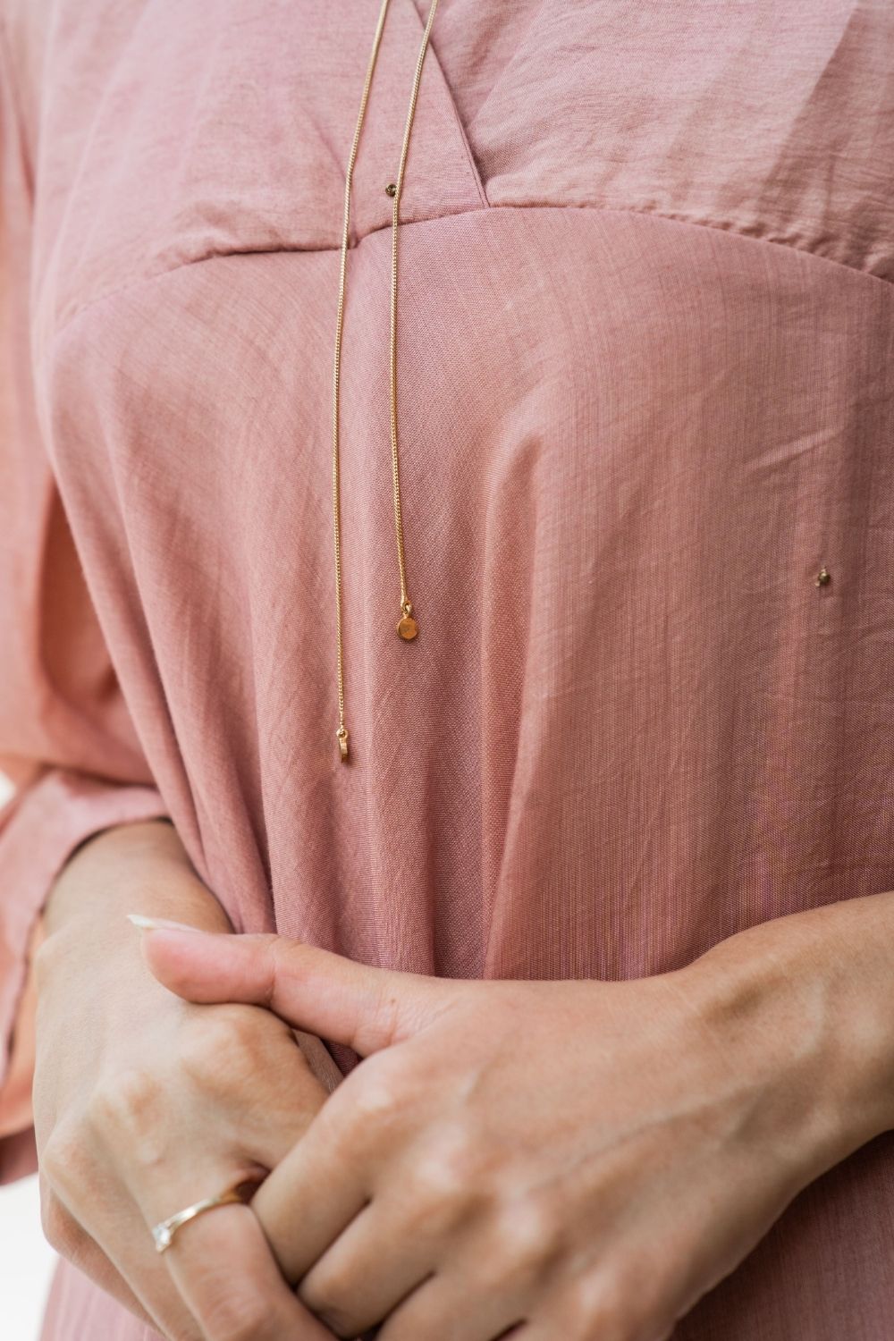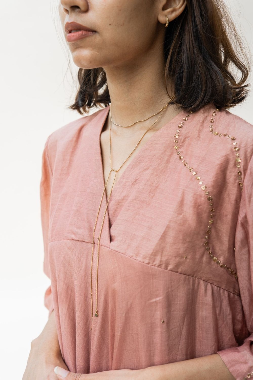 A fine chain flowing gently around the neck, along with dainty dots in handcrafted and textured brass. Style it the way you like.