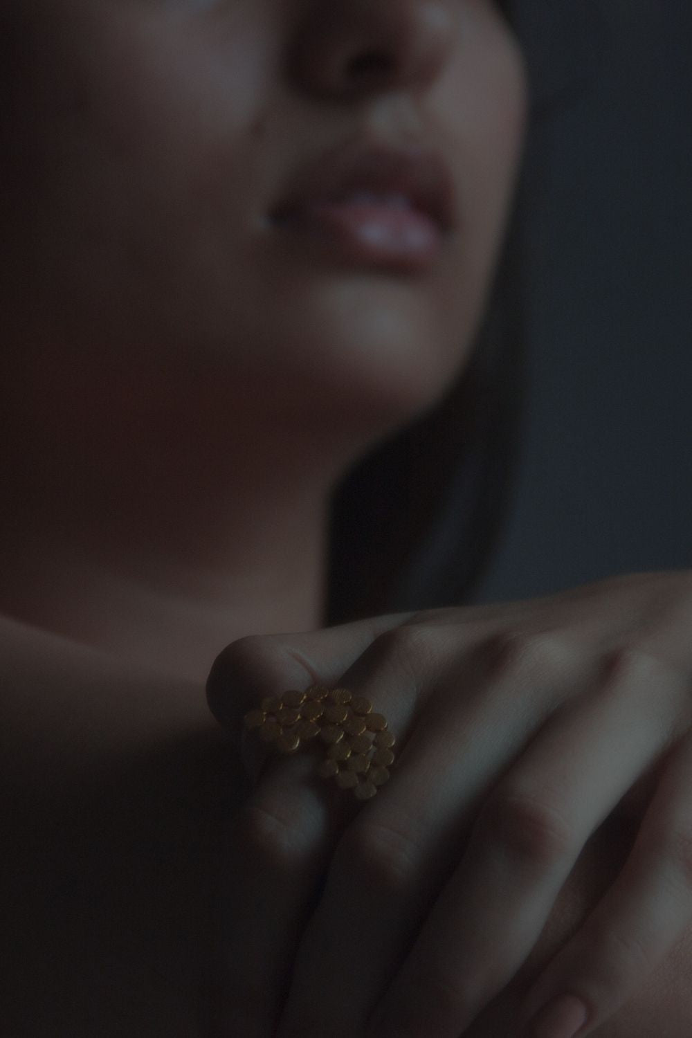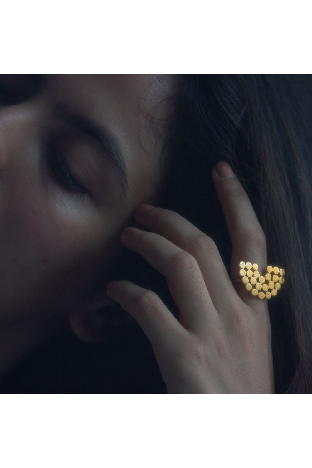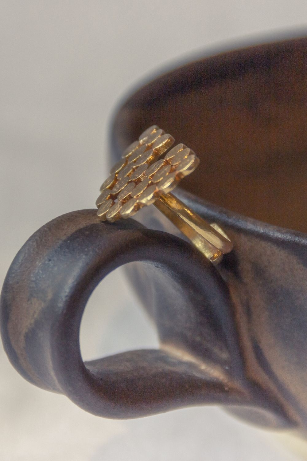 adjustable sunset ring, ethically handcrafted in brass and rhodium plated jewellery.