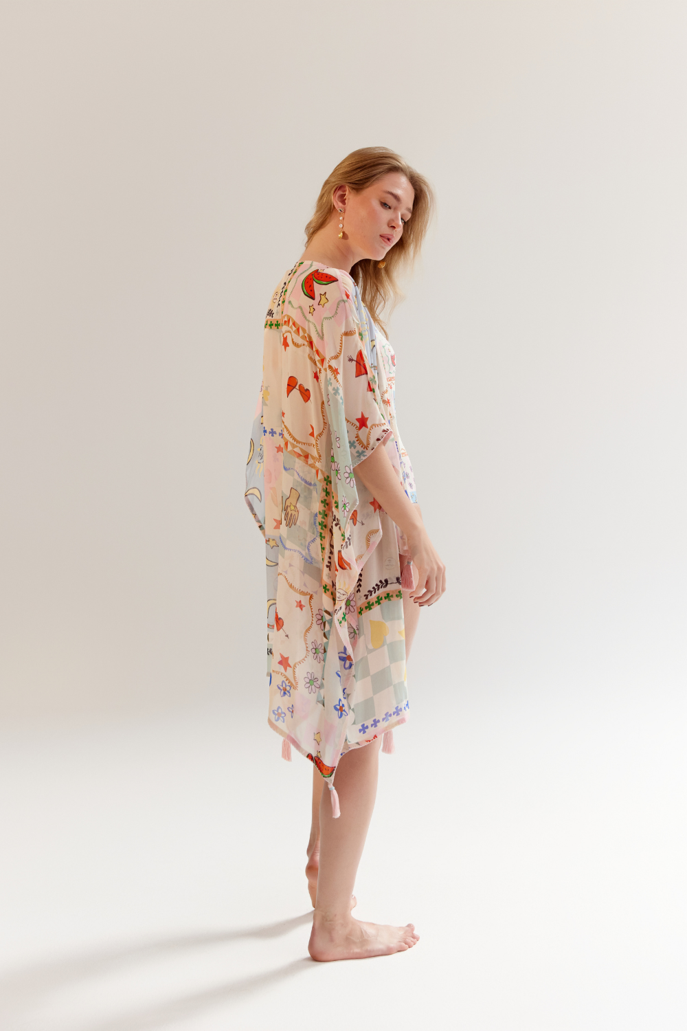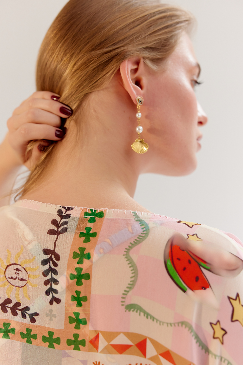 Introducing the June Coverup (Long) that is the epitome of effortless elegance and versatility. Available in three stunning variations—Landscape with its serene and expansive print, Seashell (Black) with a sophisticated placement print on a sleek black base design, and Boardgame with its playful, geometric pattern—this coverup is crafted from luxurious viscose georgette for a flowing, lightweight feel.