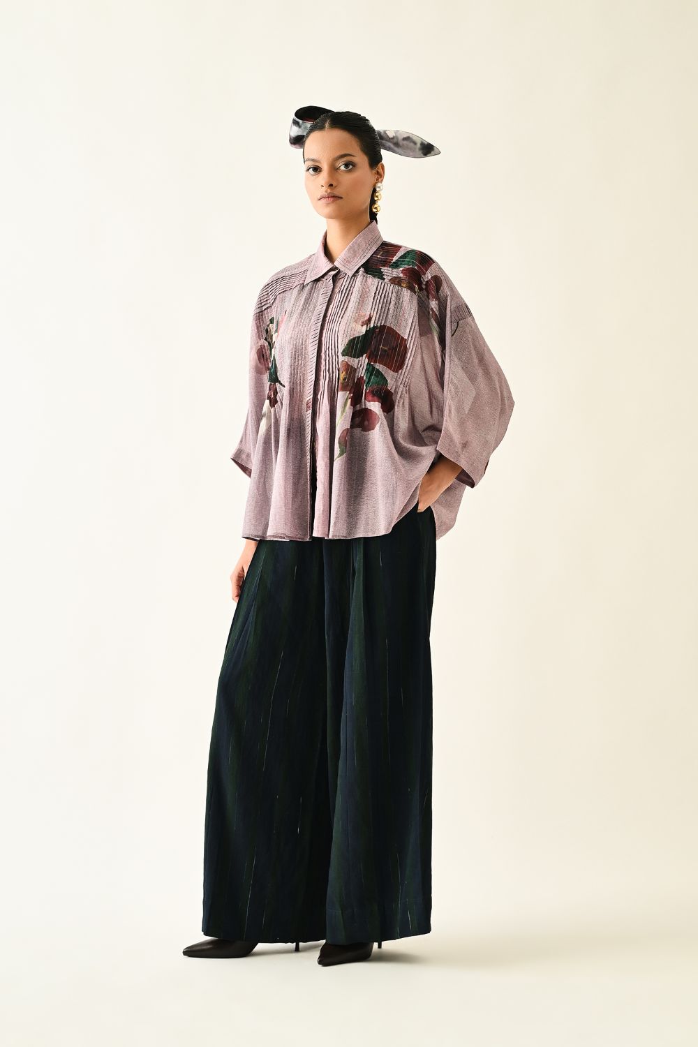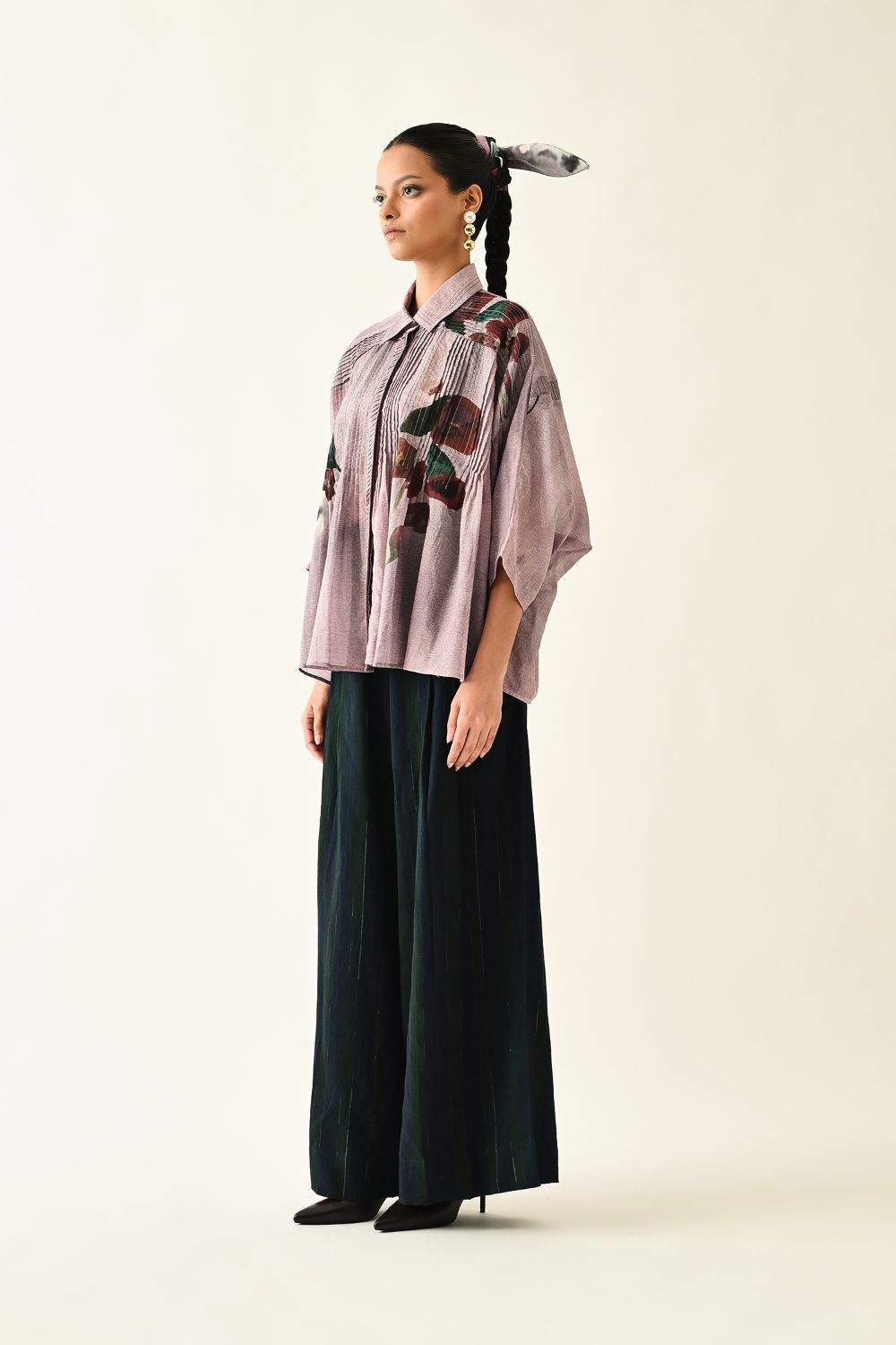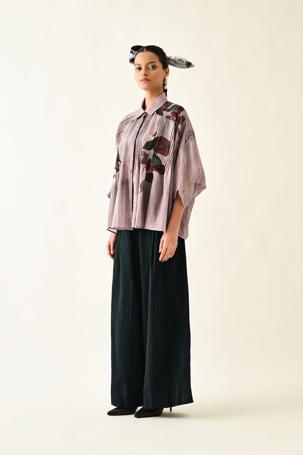 Top : Anti fit, short sleeved top, relaxed fit, vertical pin tucks on front, hand-painted abstract expressionist digitally transferred print, crafted from lightweight textiles. this piece offers both comfort and understated elegance. Print may vary- Single piece.