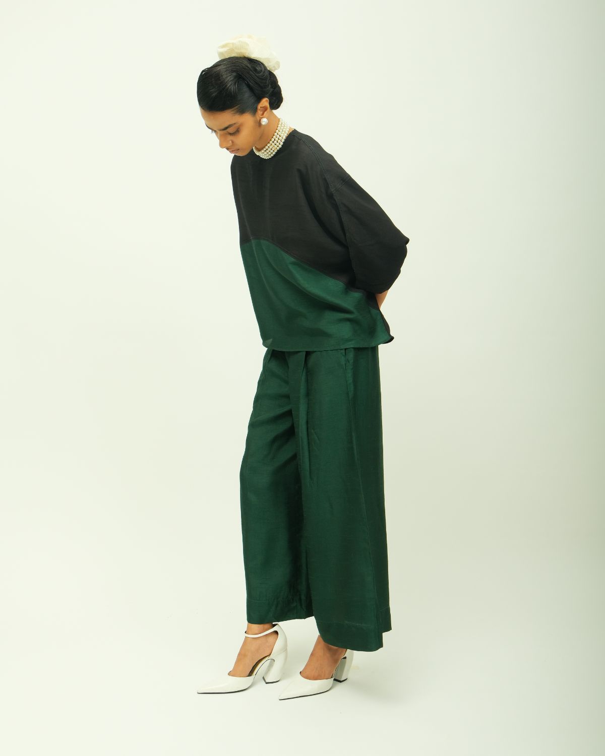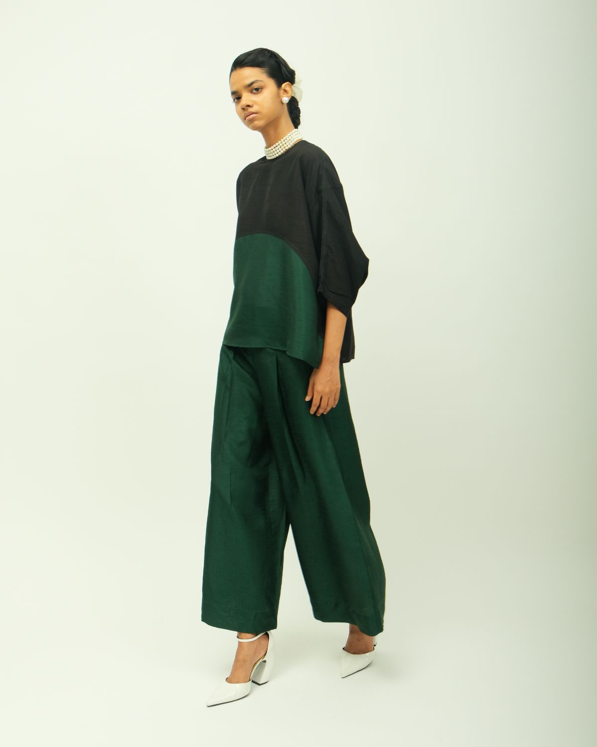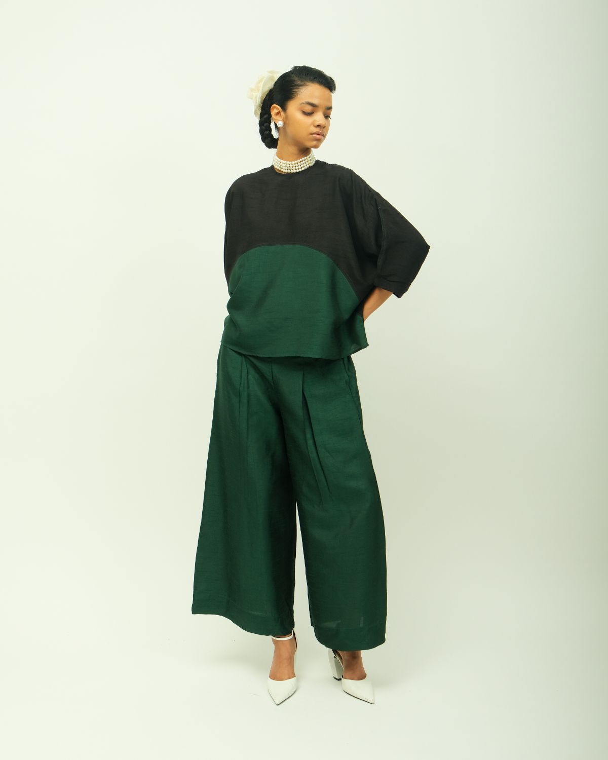 Wide leg lowers, front belt, back elasticated lowers, comes with a drawstring, side pockets. Fit variations in color, texture, and weave are inherent due to the hand-made nature of the garment—Single Piece.