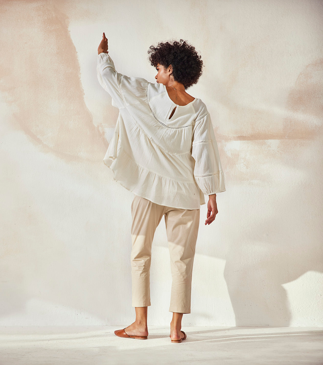 Each piece is grounded in India’s textile heritage yet designed for a woman who moves easily between cultures and climates. The brand’s commitment to homegrown cotton, artisanal processes, and clean, breathable shapes has made these garments not just beautiful, but deeply wearable.