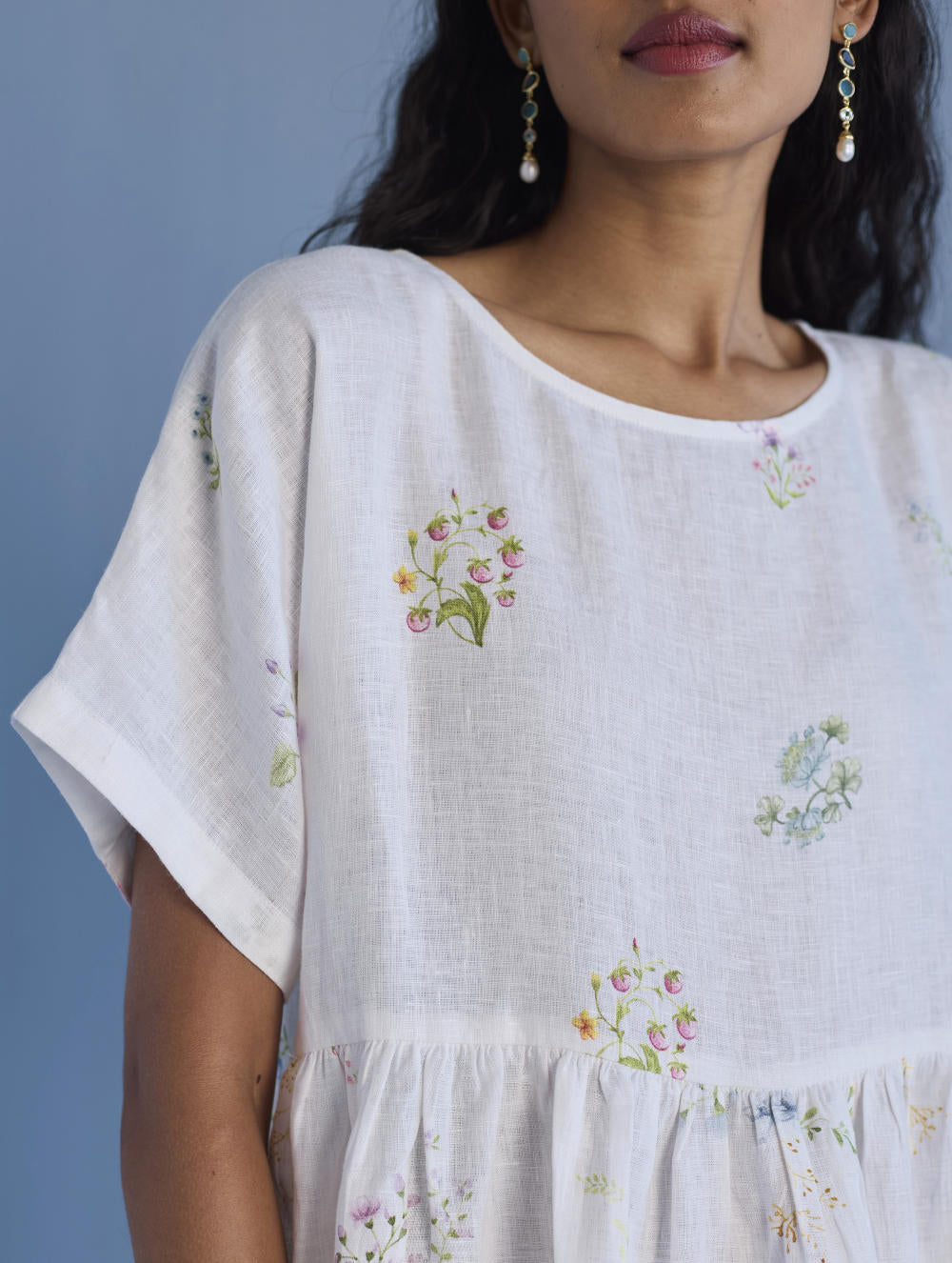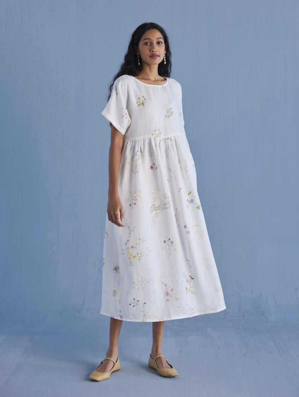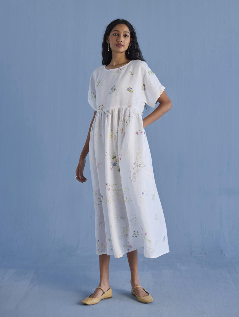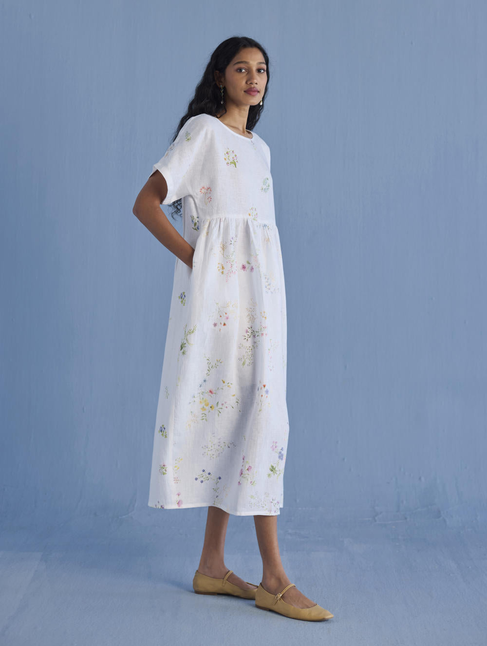 A timeless and easy-to-wear soft sheer linen dress designed with a soft timeless hand-painted floral print, pockets and intricate pleat details at the back for easy movement and style. The dress can be worn over any plain linen or cotton dresses that are part of your wardrobe. Perfect for balmy summer days.