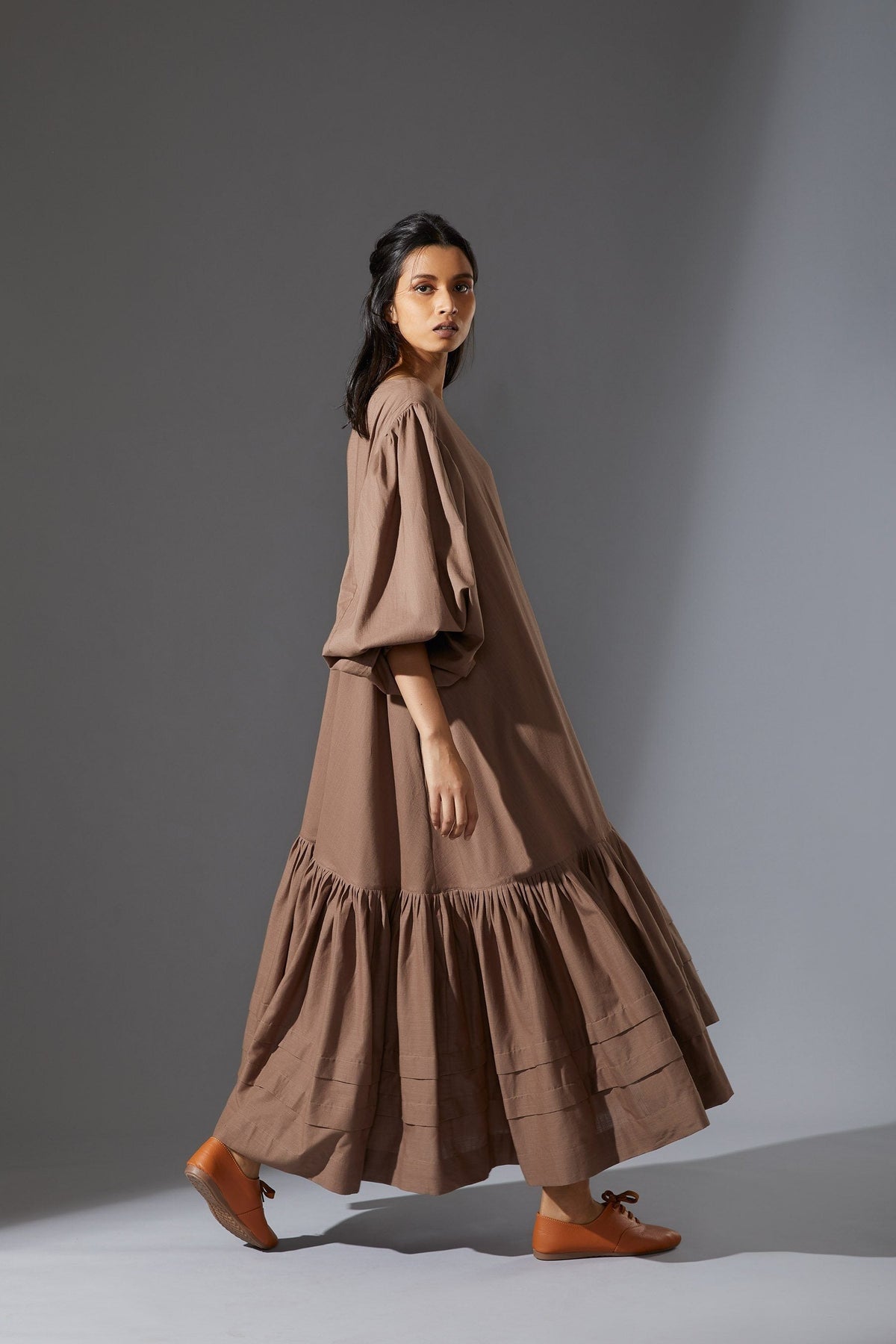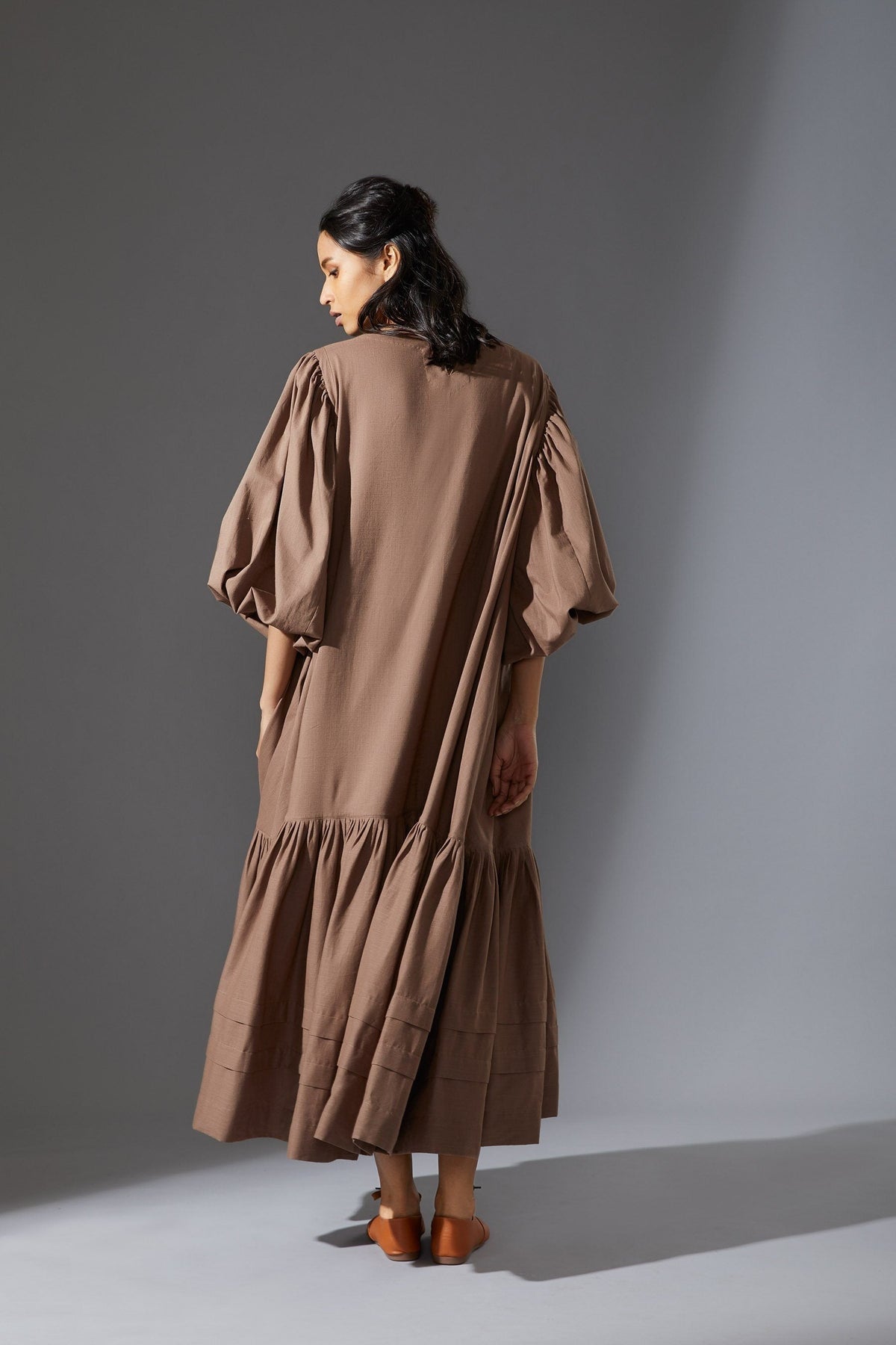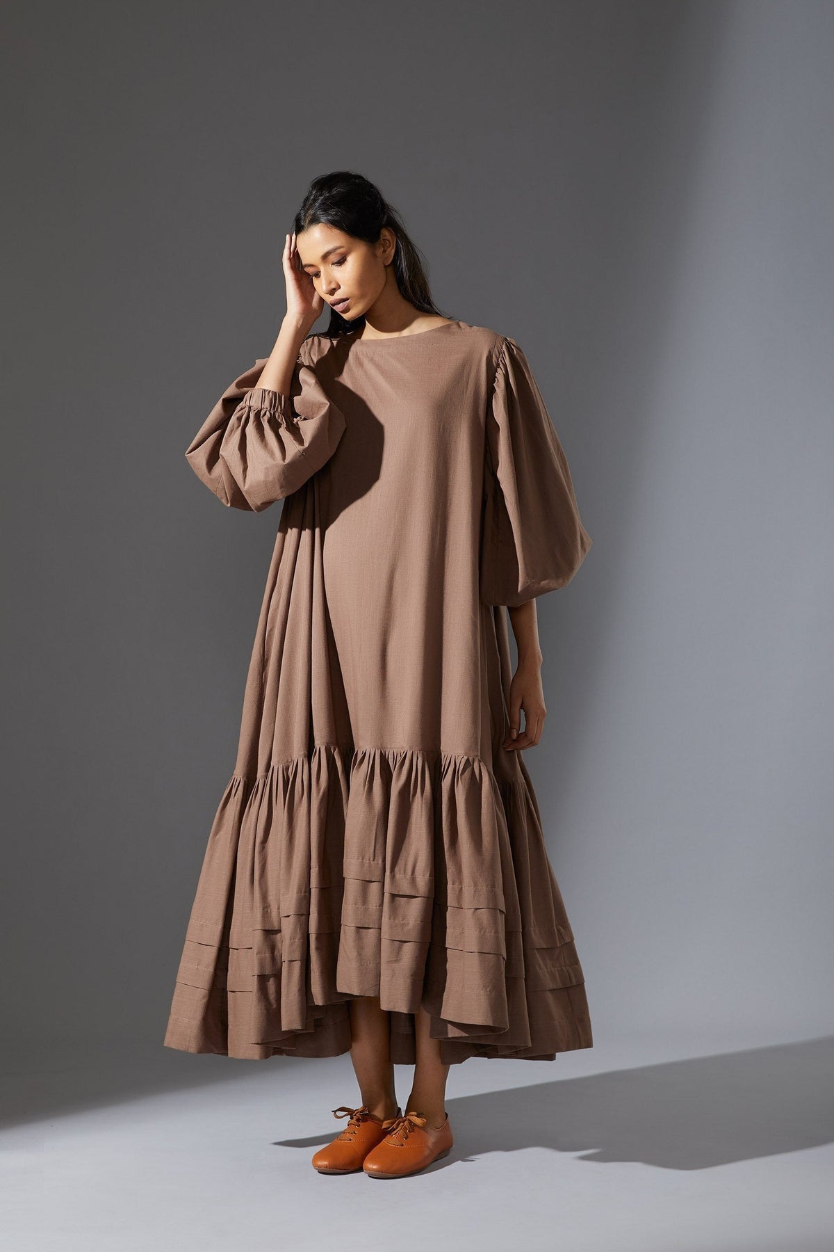 Made from luxurious handwoven cotton slub. The loose fit, voluminous blouson sleeves and swishy asymmetric hem add to the breezy, carefree feel. Wear yours with boots !!
