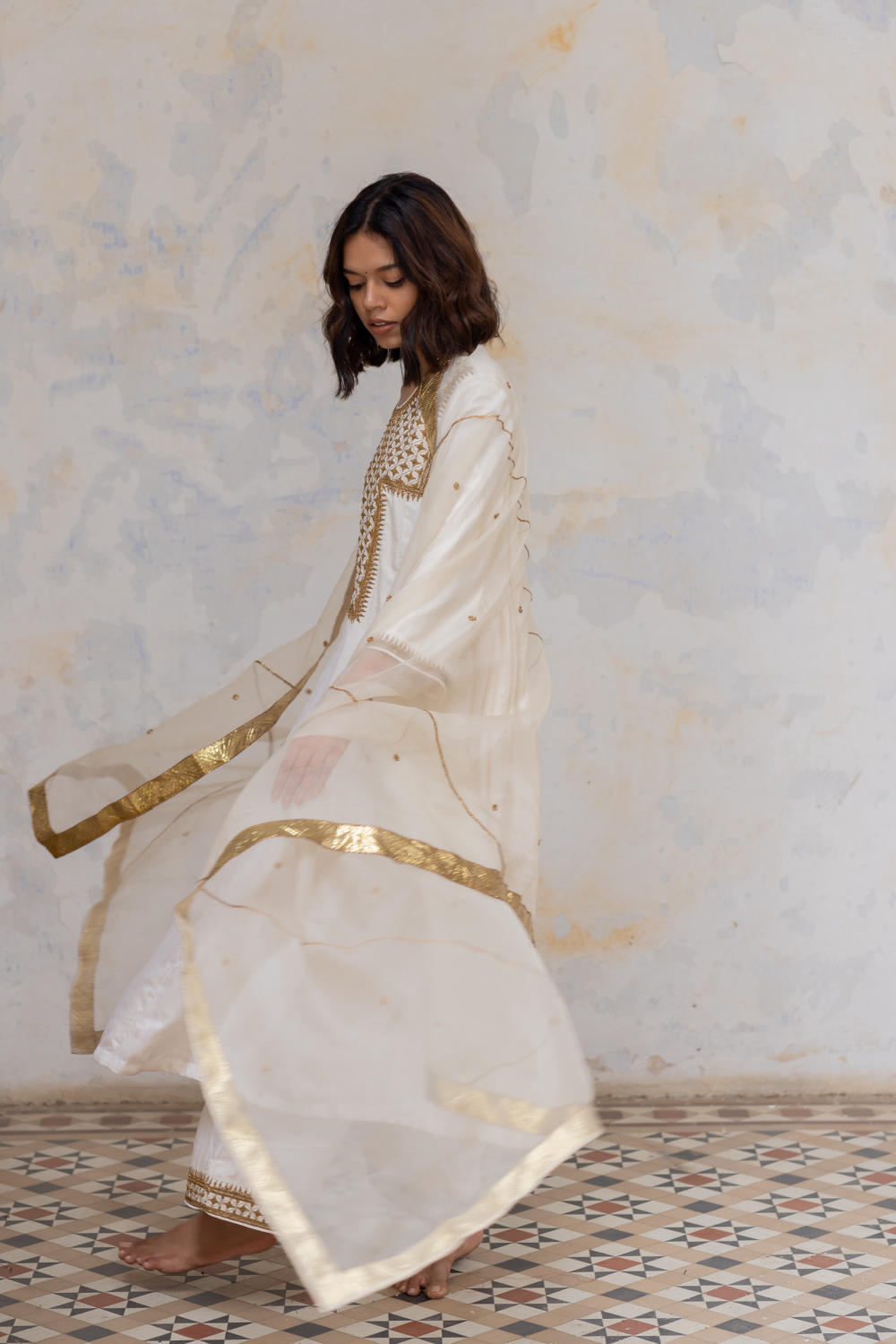 The label embraces the rich artisanal heritage of Mughal India through its offerings. The nizams and the Persians enamored the world with their own unparalleled craftsmanship. The intention is to mould that into timeless design through modern techniques and fluid silhouettes.