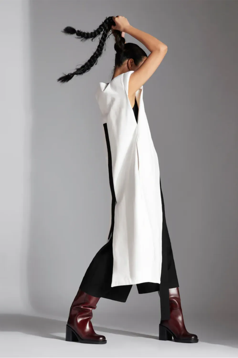 Chola’s universe begins with thoughtful materials. Recycled cottons, post-consumer fabrics, and free-cutting techniques come together in a kind of mindful choreography—one that honours form without creating waste, and prioritises movement over rigidity. This is clothing that feels lived-in yet architectural; pared-back yet quietly avant-garde.