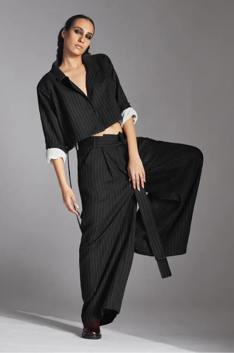 Chola’s universe begins with thoughtful materials. Recycled cottons, post-consumer fabrics, and free-cutting techniques come together in a kind of mindful choreography—one that honours form without creating waste, and prioritises movement over rigidity. This is clothing that feels lived-in yet architectural; pared-back yet quietly avant-garde.