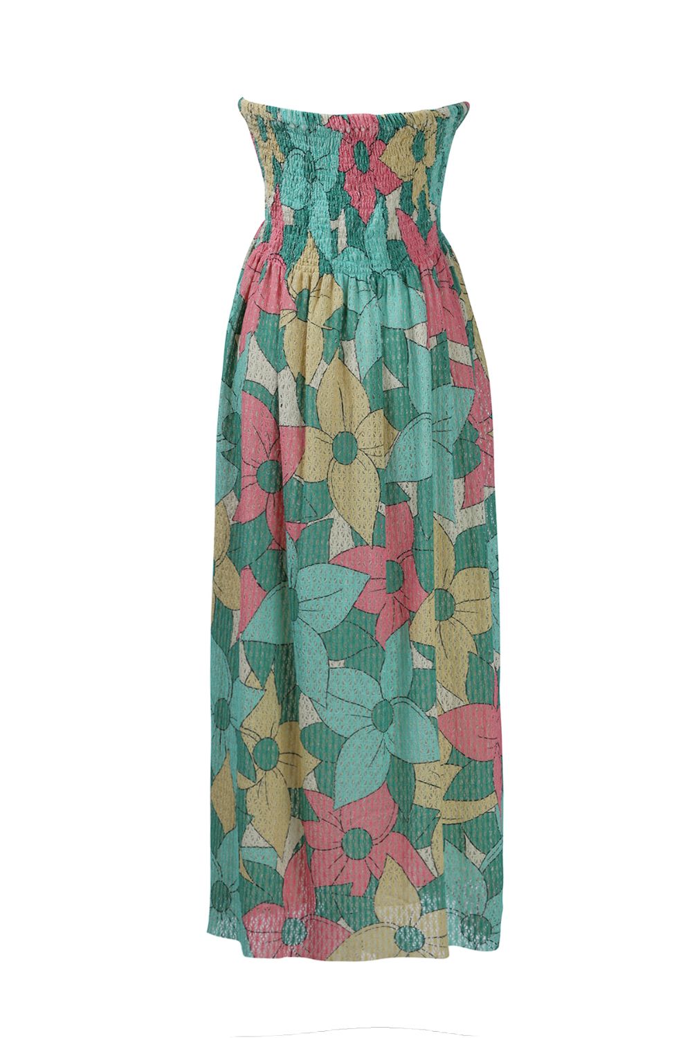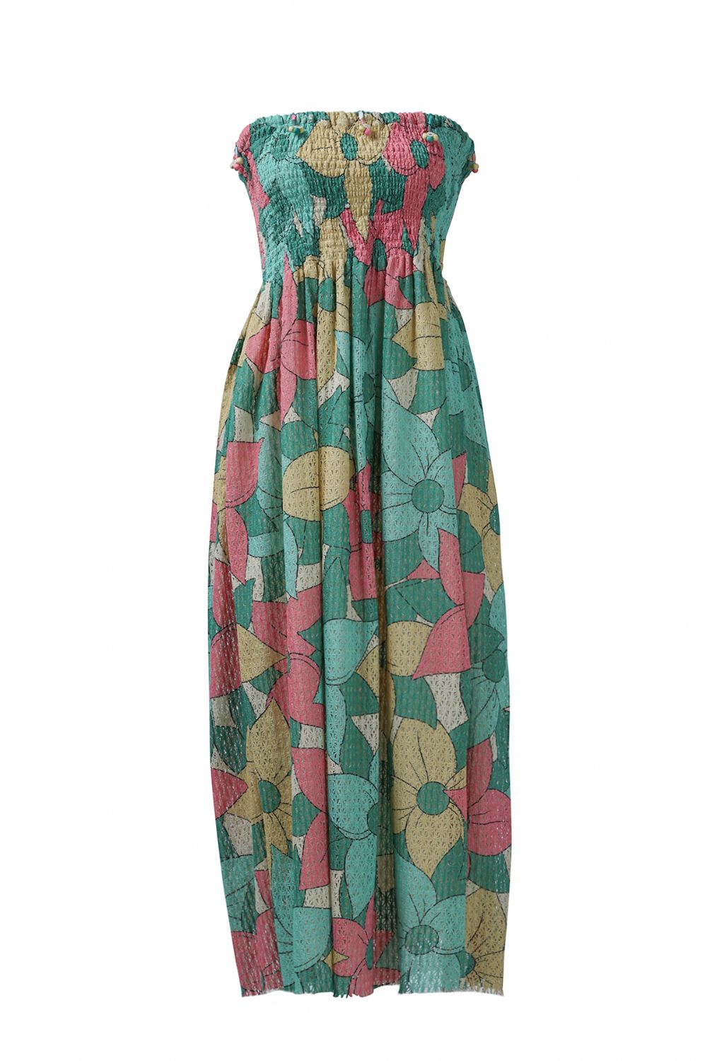 Make a bold statement with this tube-style cotton net dress in oversized multicolor floral print. Designed to capture the spirit of tropical vacations or brunches, its strapless cut and breezy fit flatter every figure while ensuring all-day comfort.