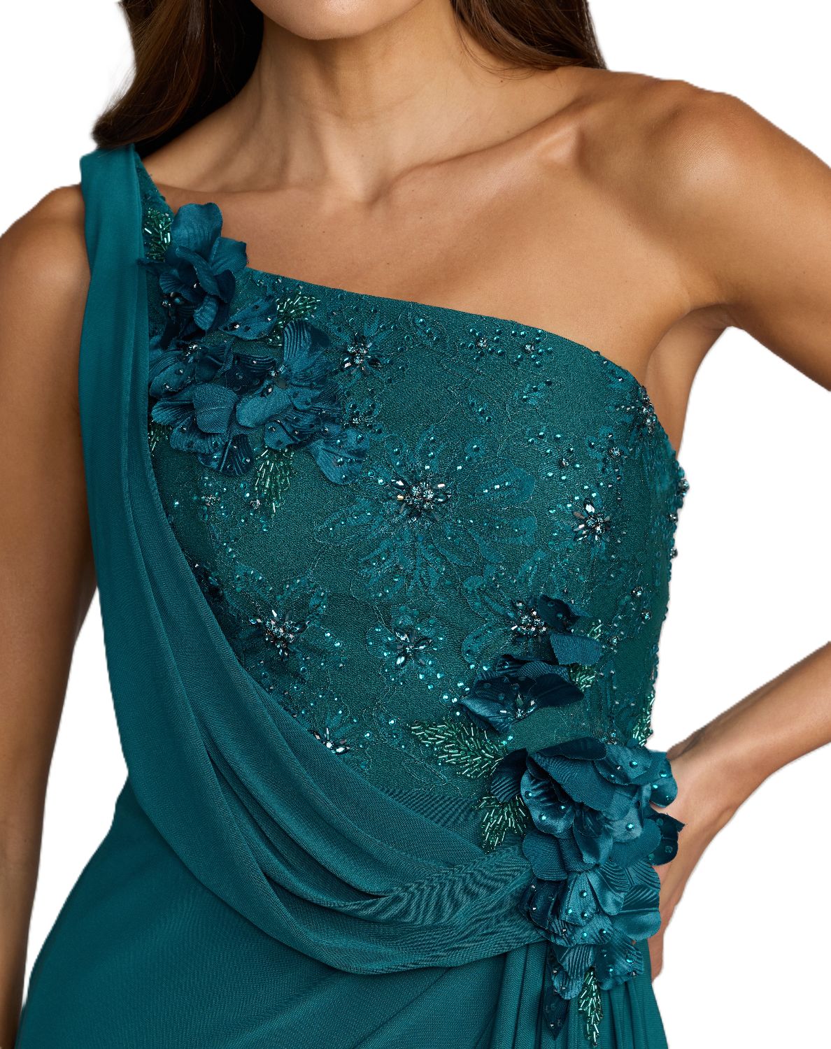 3D flower detailing on bodice and waist