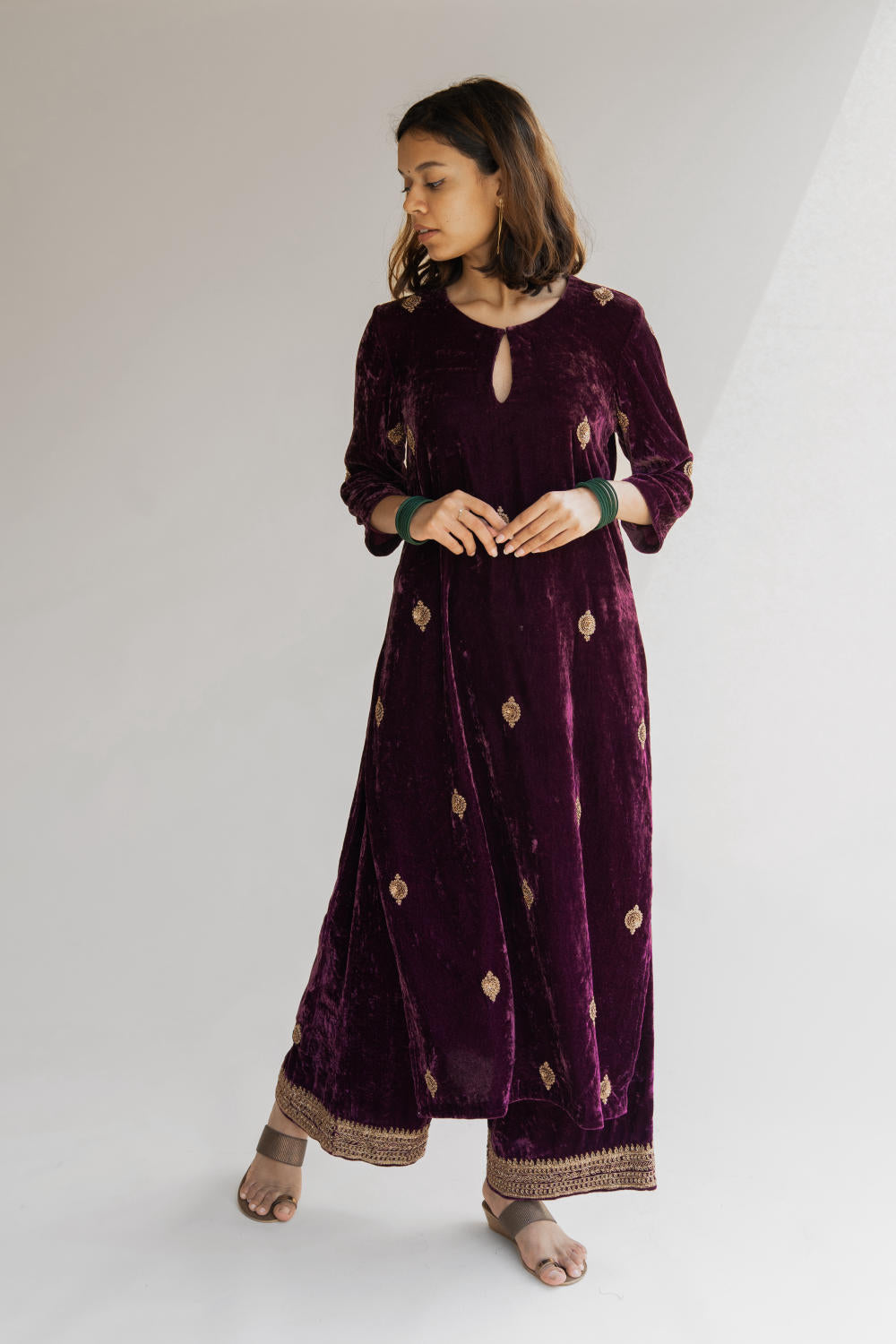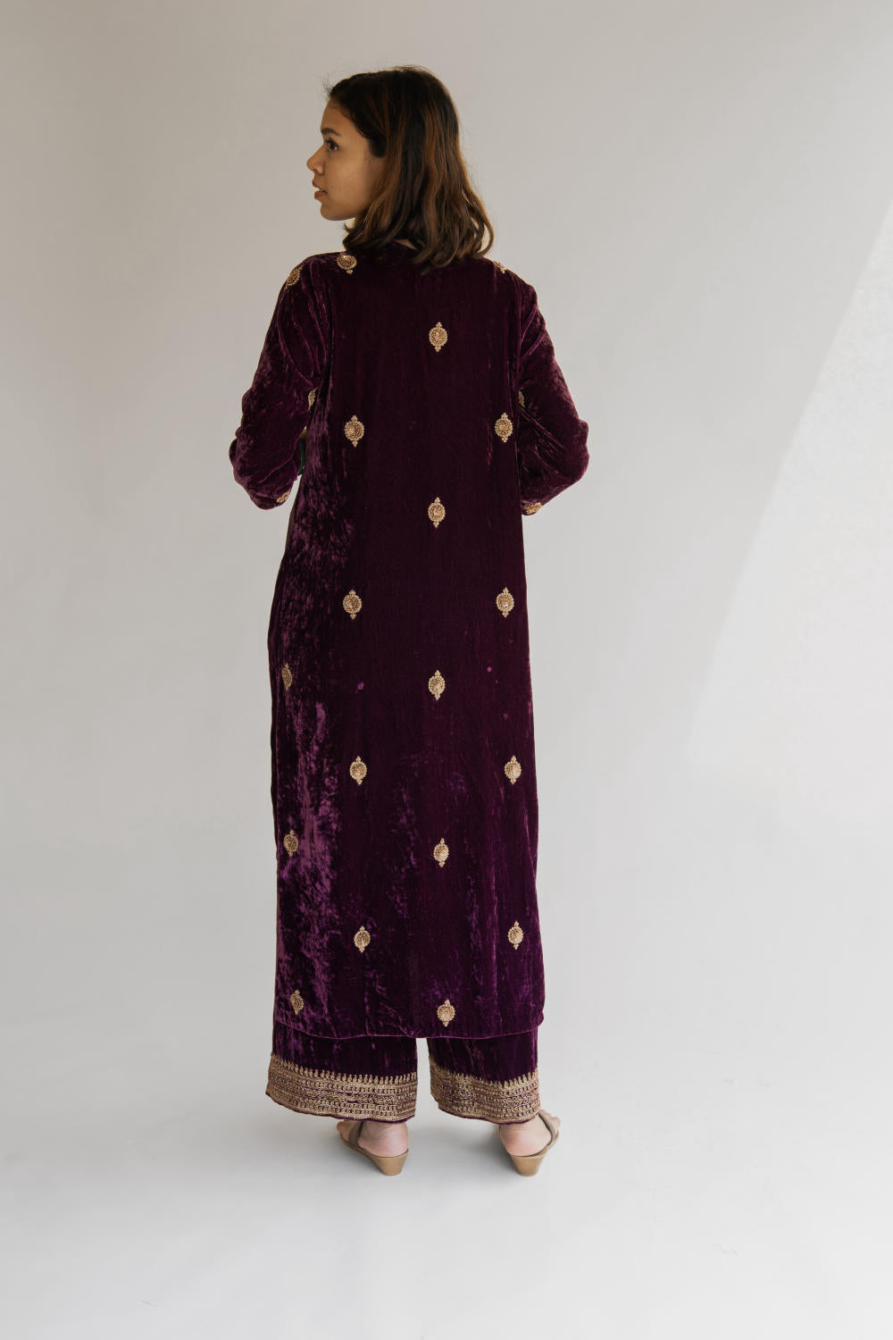 With velvet being the reason behind this ensemble's rich fall, it retains its soul and holds you close to your grounds.