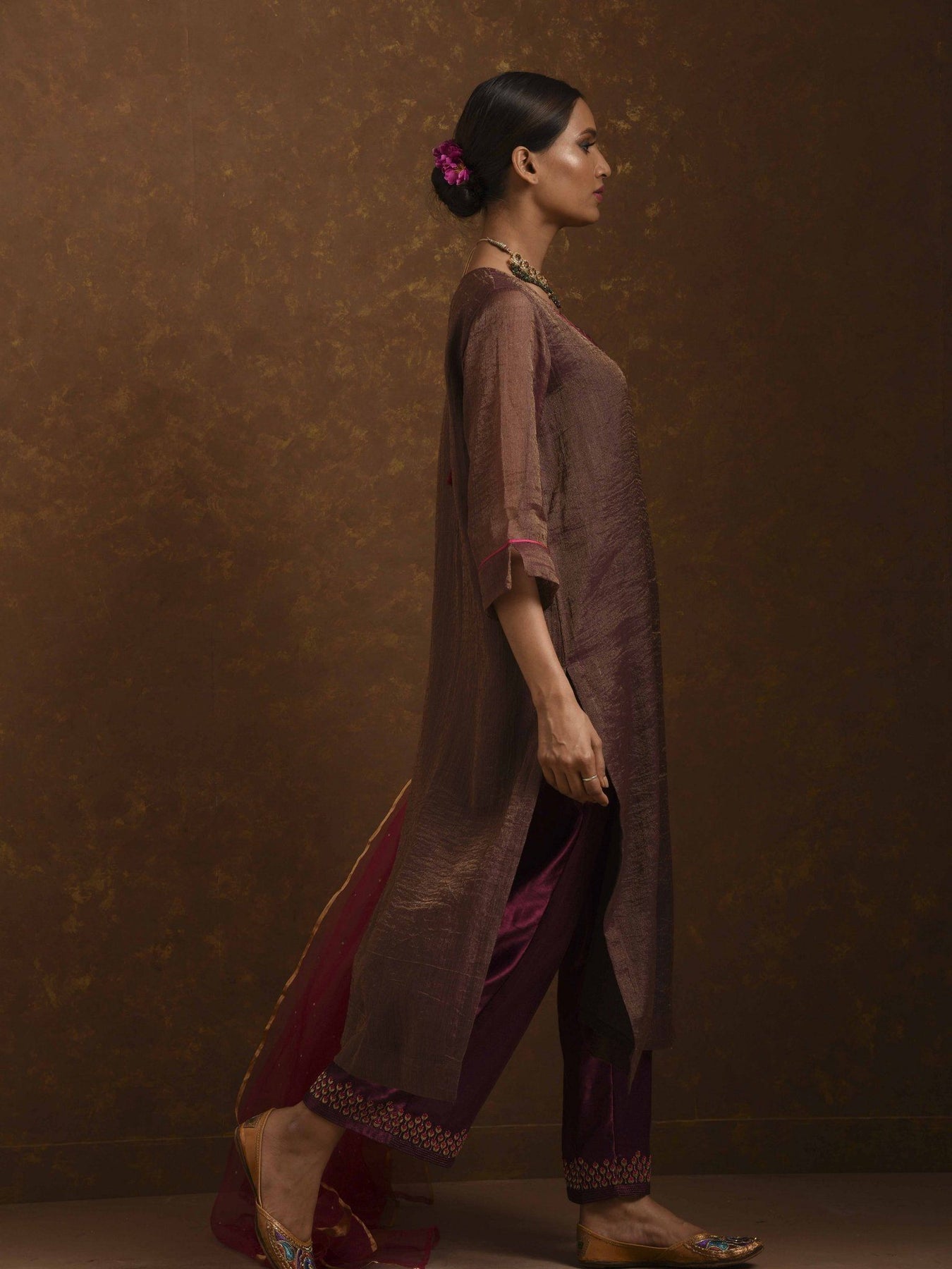 Straight fit kurta, Dupatta, farshi Pants, zardozi handwork