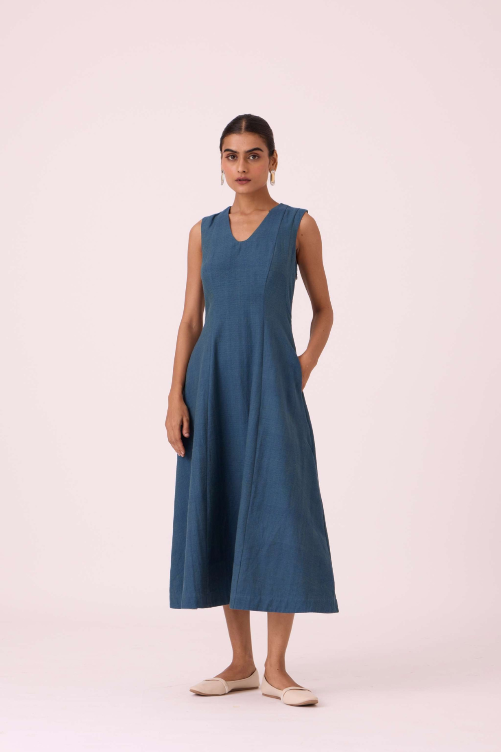 - Fit and Flare dress with a soft V-neckline