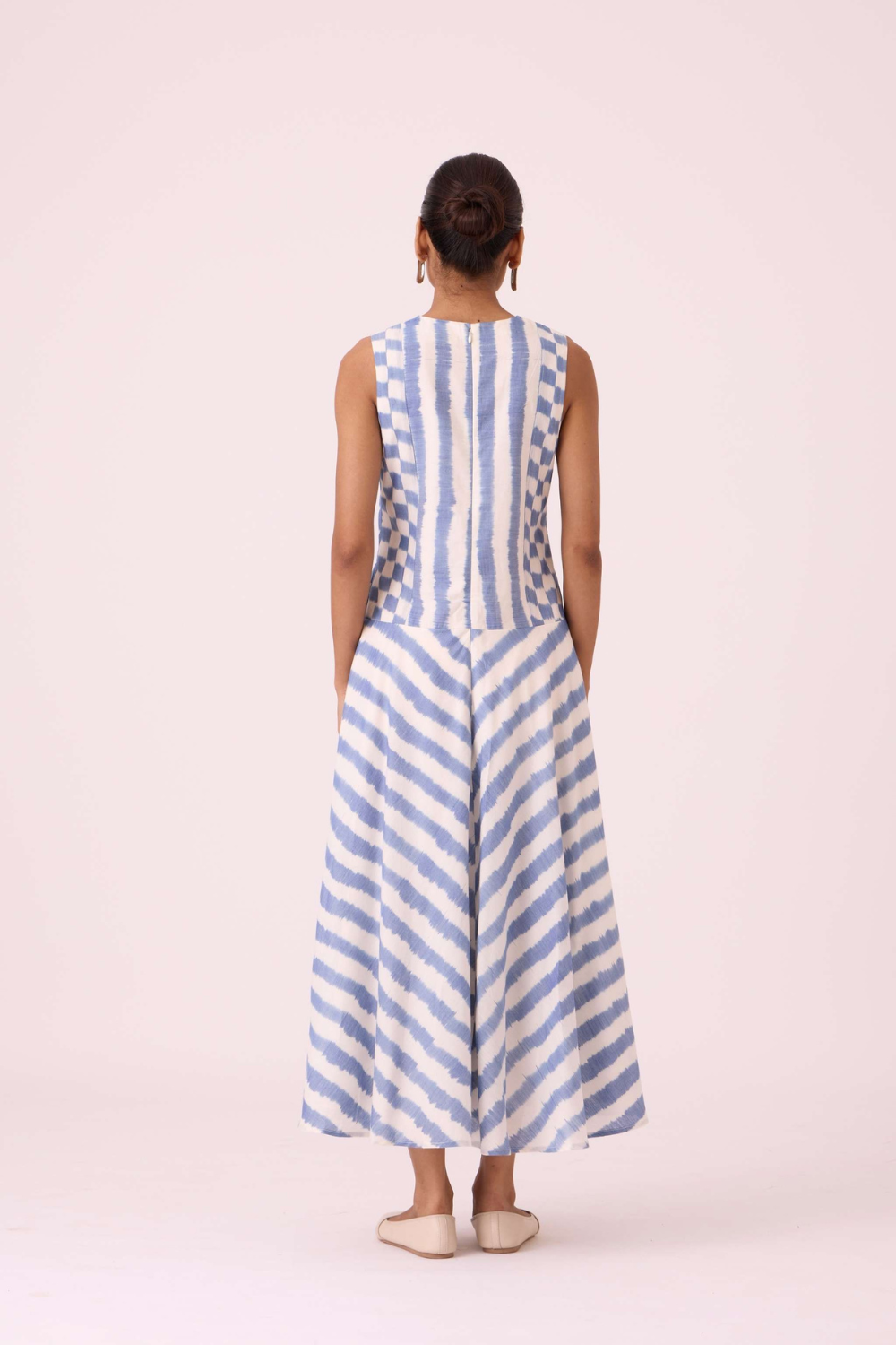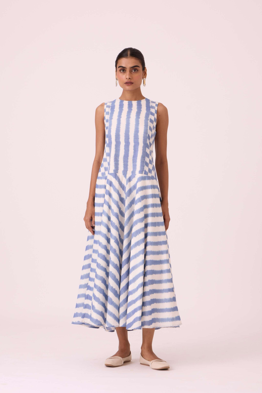 - Drop waist, panelled sleeveless dress