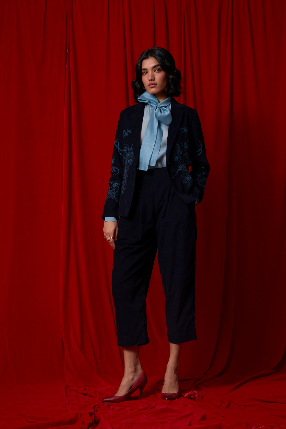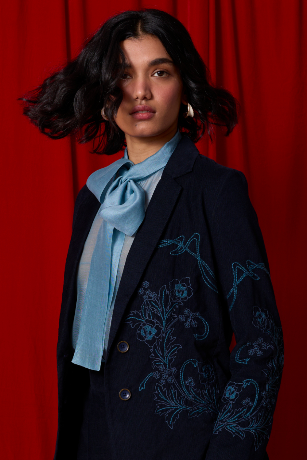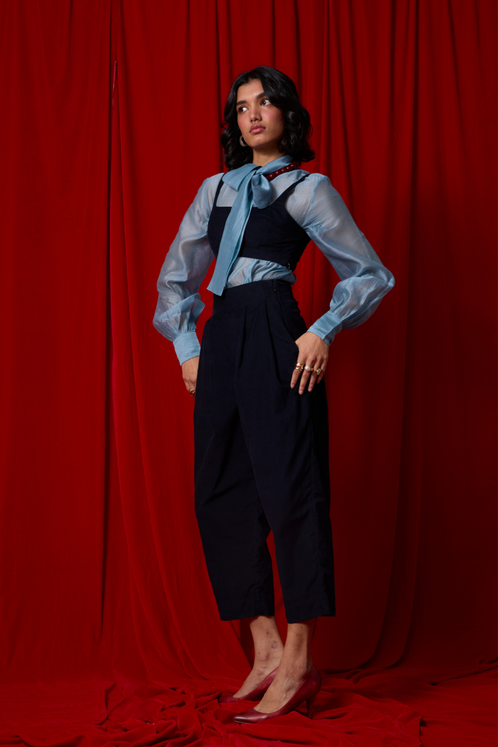 A chanderi blouson that finds its femininity in quiet gestures
