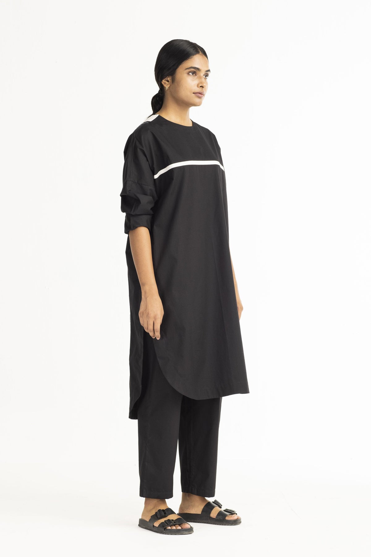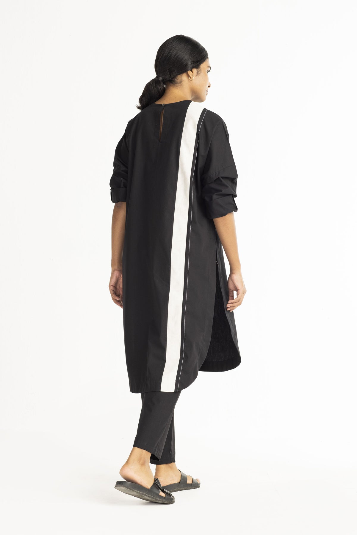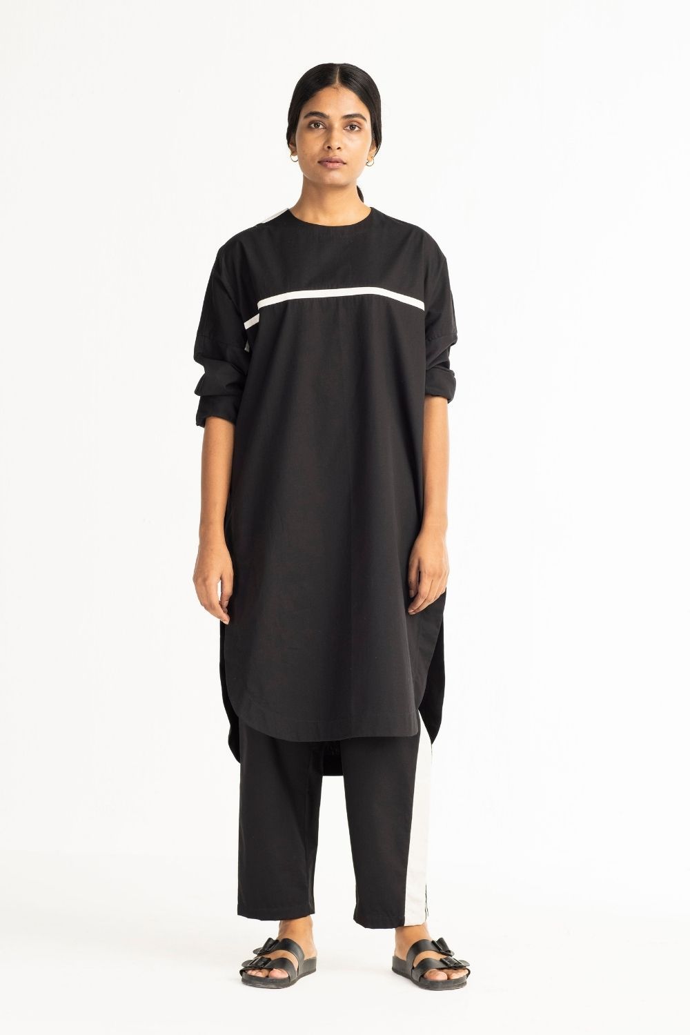 Clever cuts, asymmetric patterns, a neutral palette and simplicity of geometric details form the core aesthetic of the brand. Their love for asymmetry and imperfection clearly reflects in their silhouettes and hemlines. The label is a modern mix of conceptual and wearable clothing which defies age bar as the ensembles exude comfort, more so with their signature anti-fit coords.