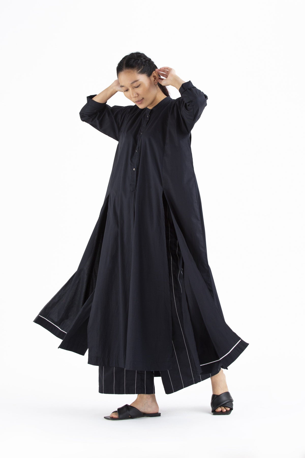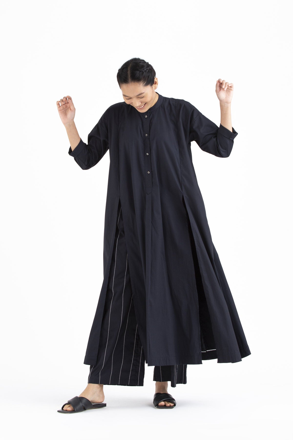 Clever cuts, asymmetric patterns, a neutral palette and simplicity of geometric details form the core aesthetic of the brand. Their love for asymmetry and imperfection clearly reflects in their silhouettes and hemlines. The label is a modern mix of conceptual and wearable clothing which defies age bar as the ensembles exude comfort, more so with their signature anti-fit coords.