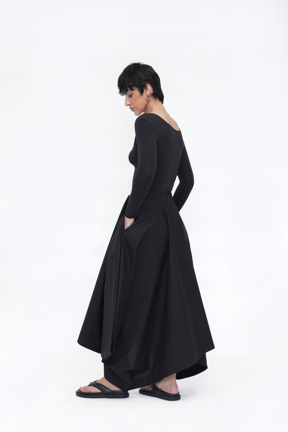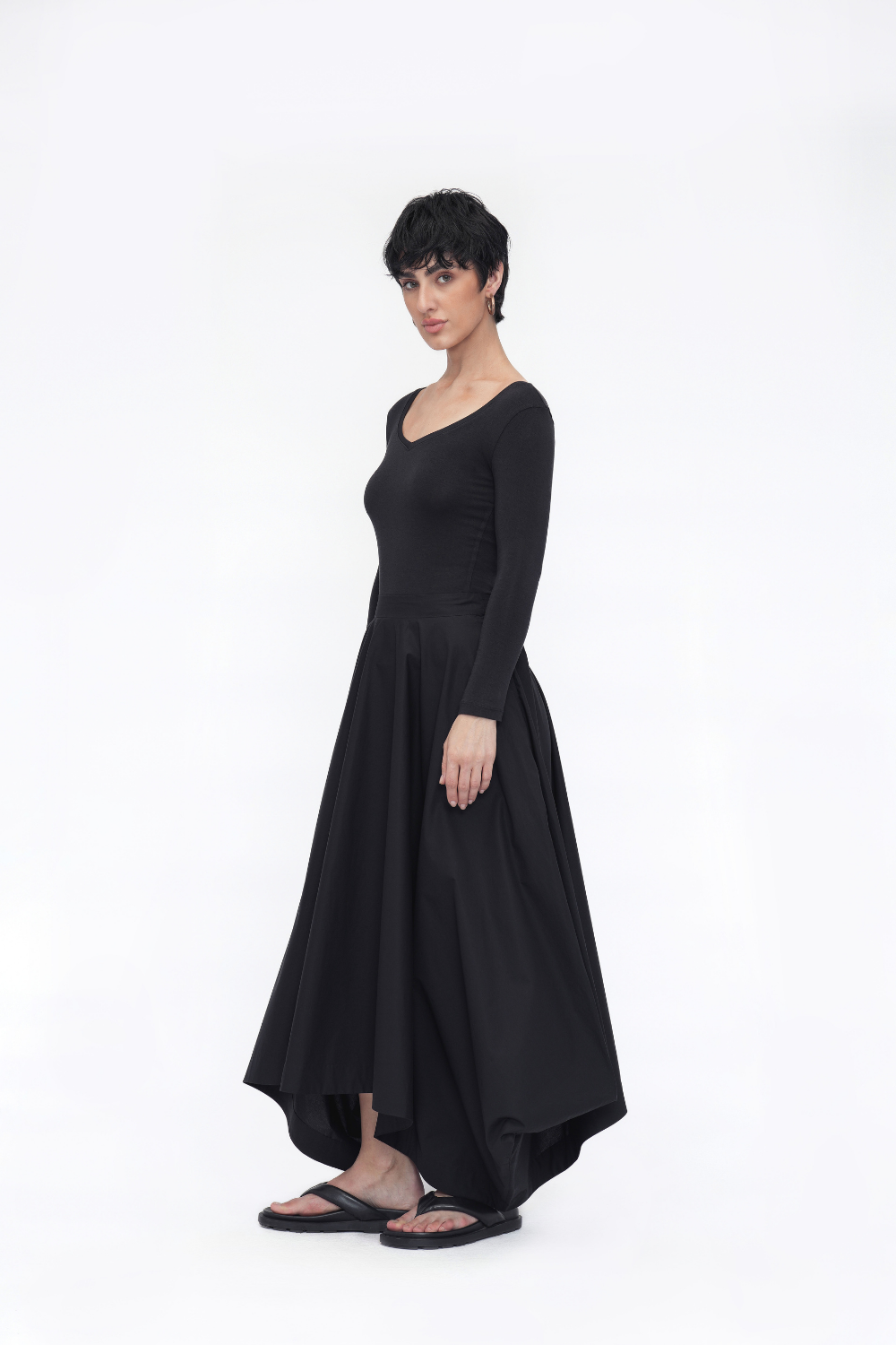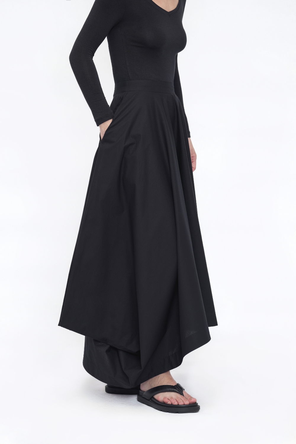 Fitted at the waist with an elegant handkerchief asymmetric hemline, the Zema flows with effortless grace. Crafted from crisp cotton poplin, it features an all-around waistband, concealed zip closure, and practical side seam pockets.