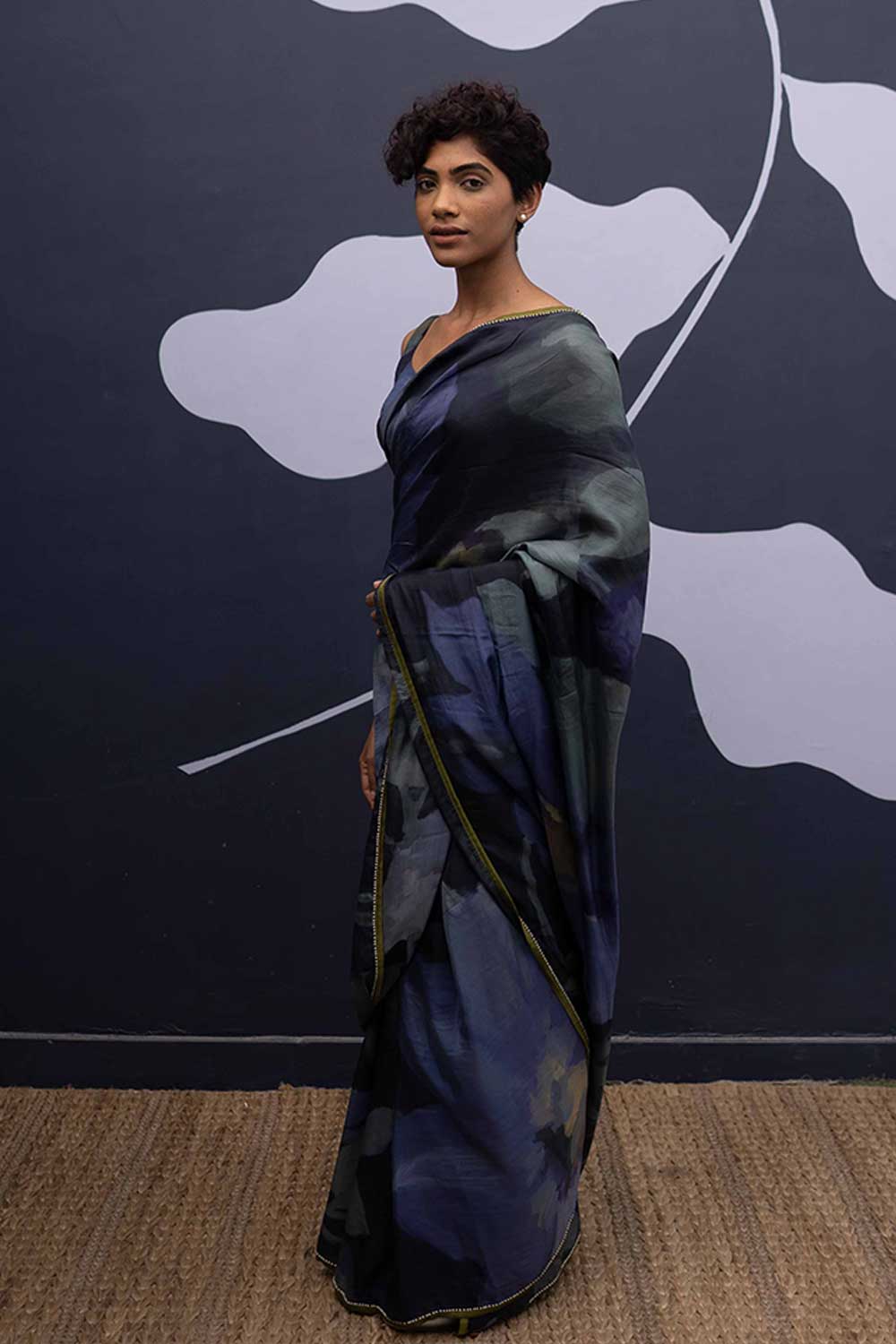 .The Saree is crafted in babka print carefully printed on dora silk.