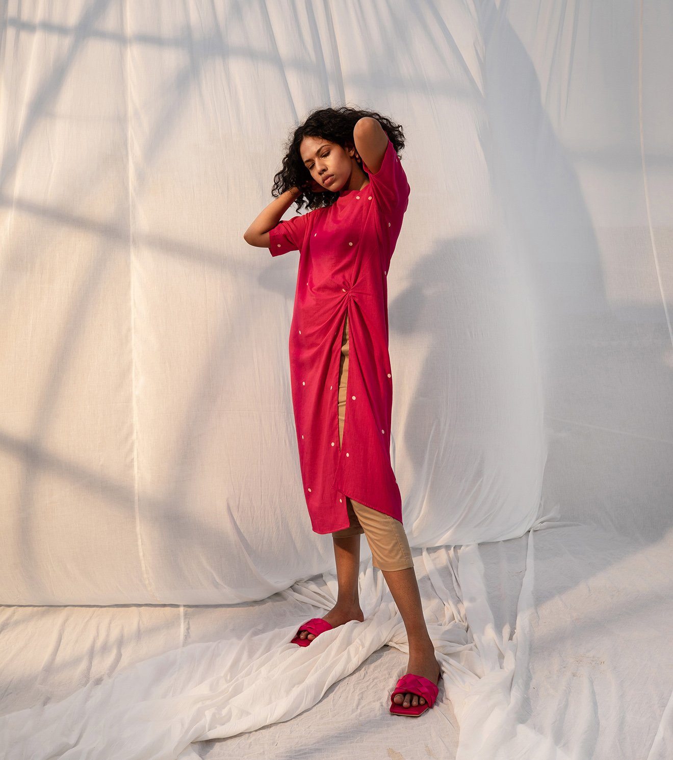 Each piece is grounded in India’s textile heritage yet designed for a woman who moves easily between cultures and climates. The brand’s commitment to homegrown cotton, artisanal processes, and clean, breathable shapes has made these garments not just beautiful, but deeply wearable.
