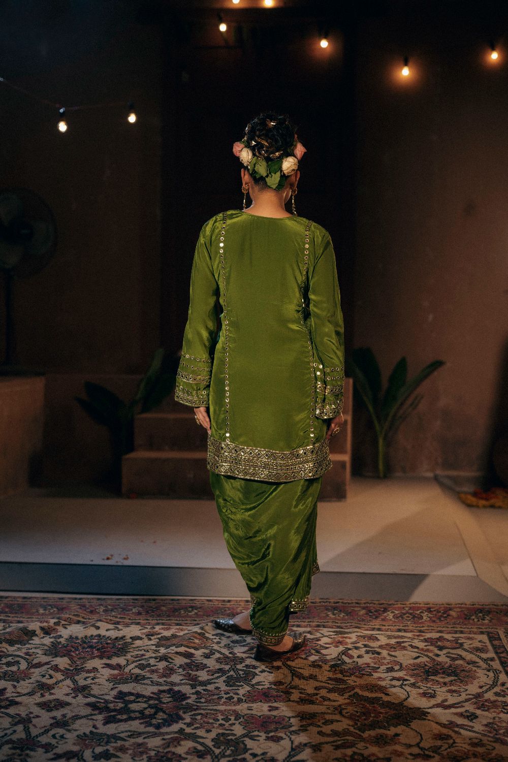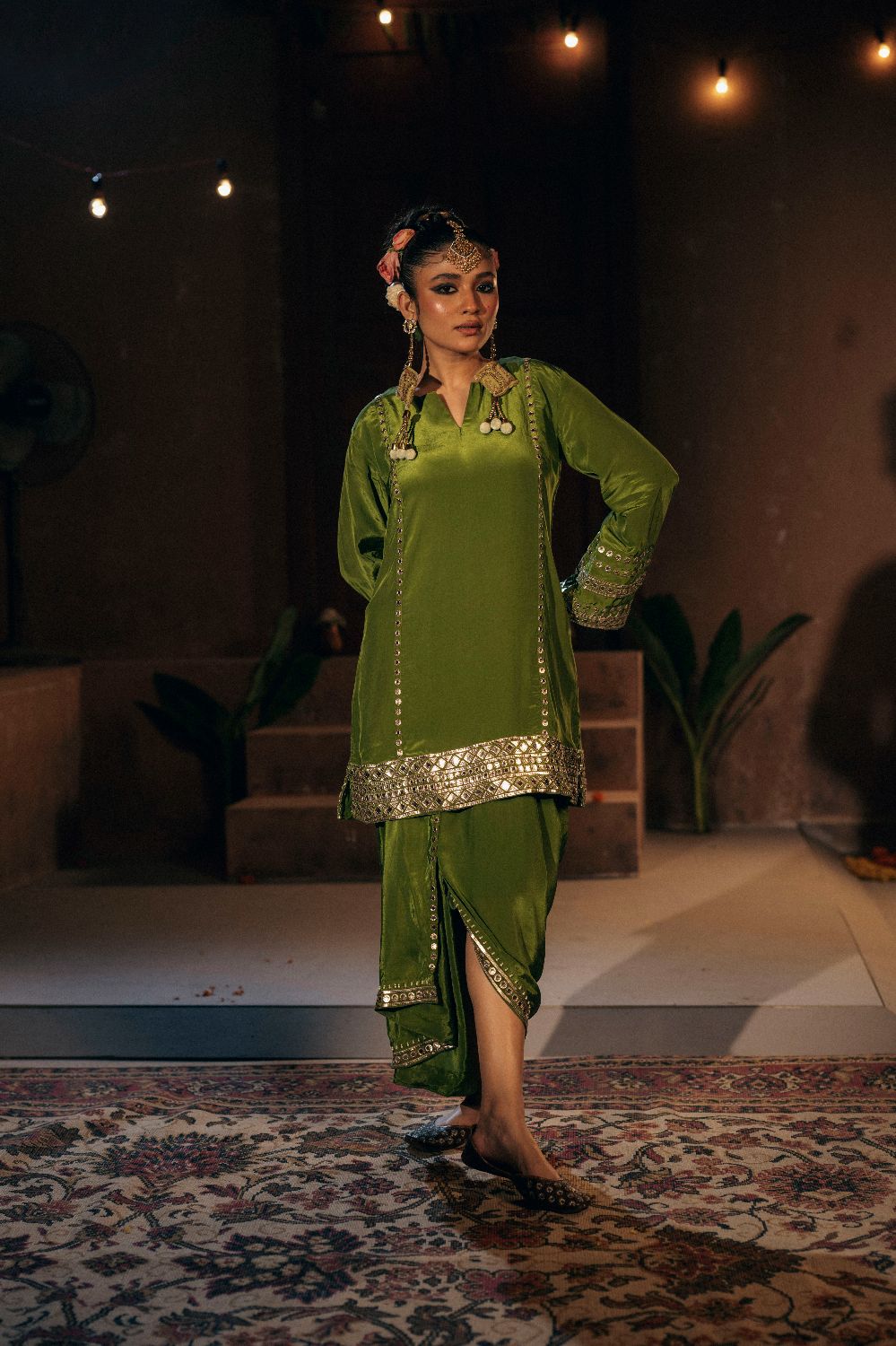 Step into chic style with this Pleated Skirt Kameez Set.The structured kameez offers a relaxed yet tailored fit, while the pleated skirt adds drama and style, creating a contemporary silhouette for curated celebrations. Model wears size S.
