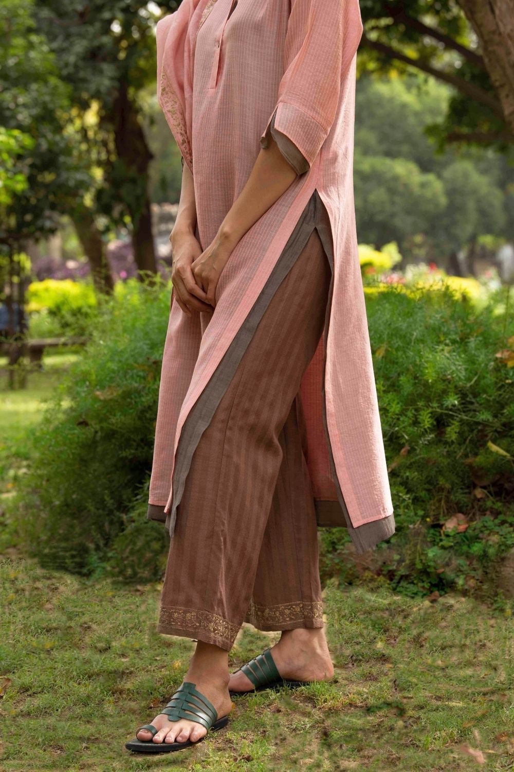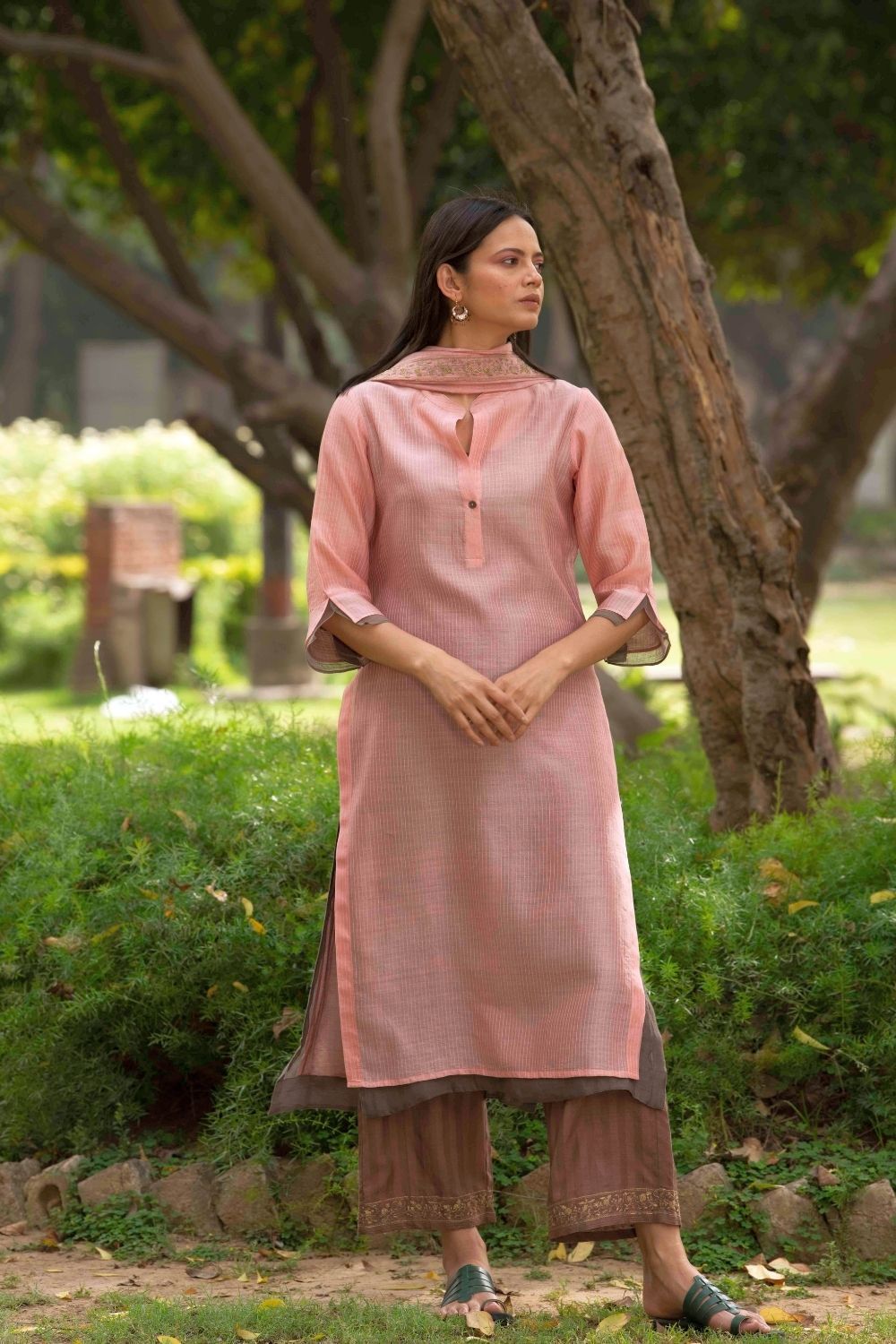 Unusual combination, Double Layer Smart Kurta with Tilla Embroidered pants and Dupatta