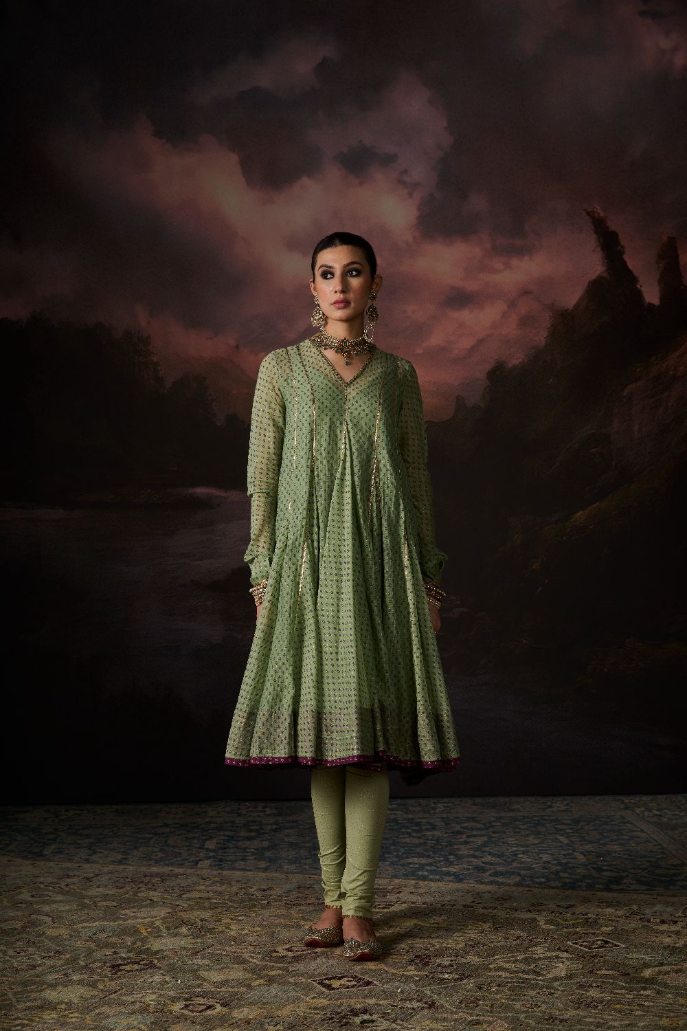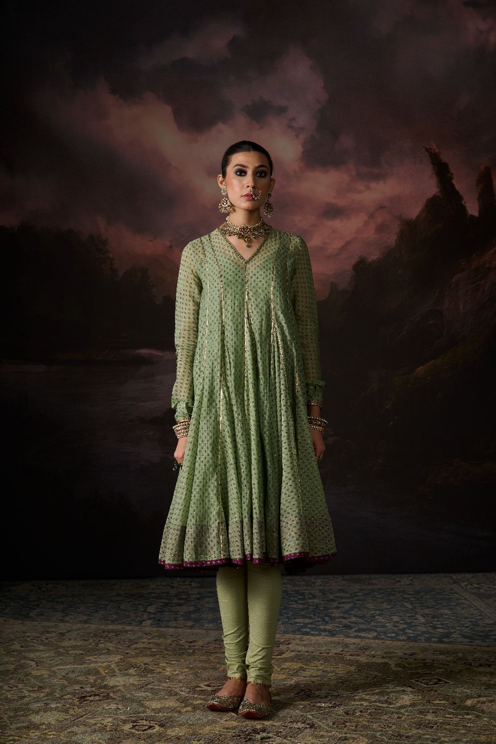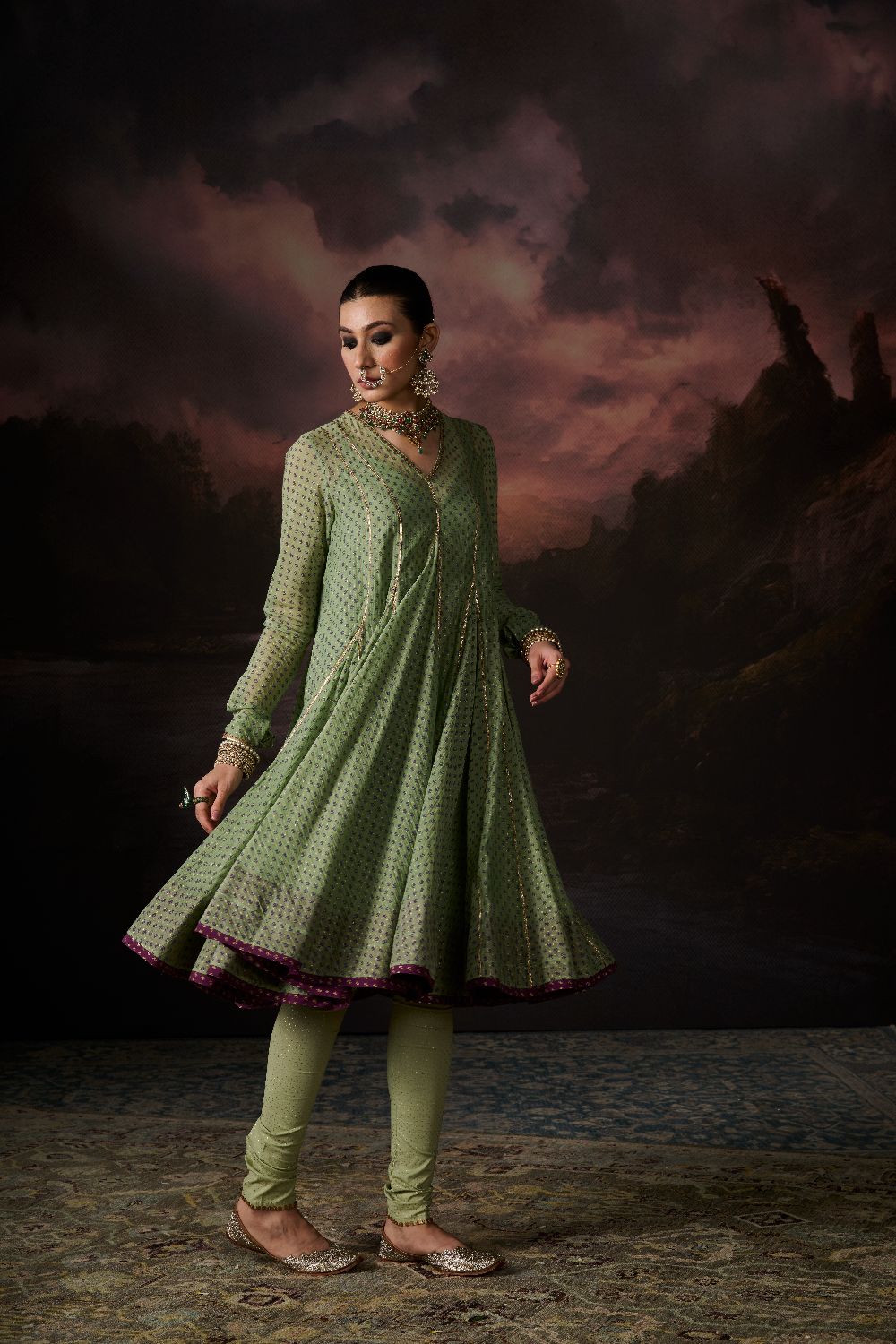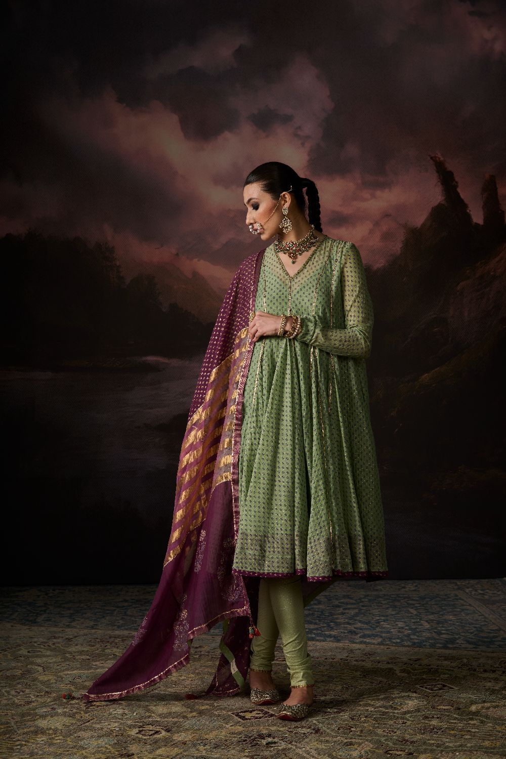 Cotton Lycra Churidar With Hand Block Printed Gold Foil