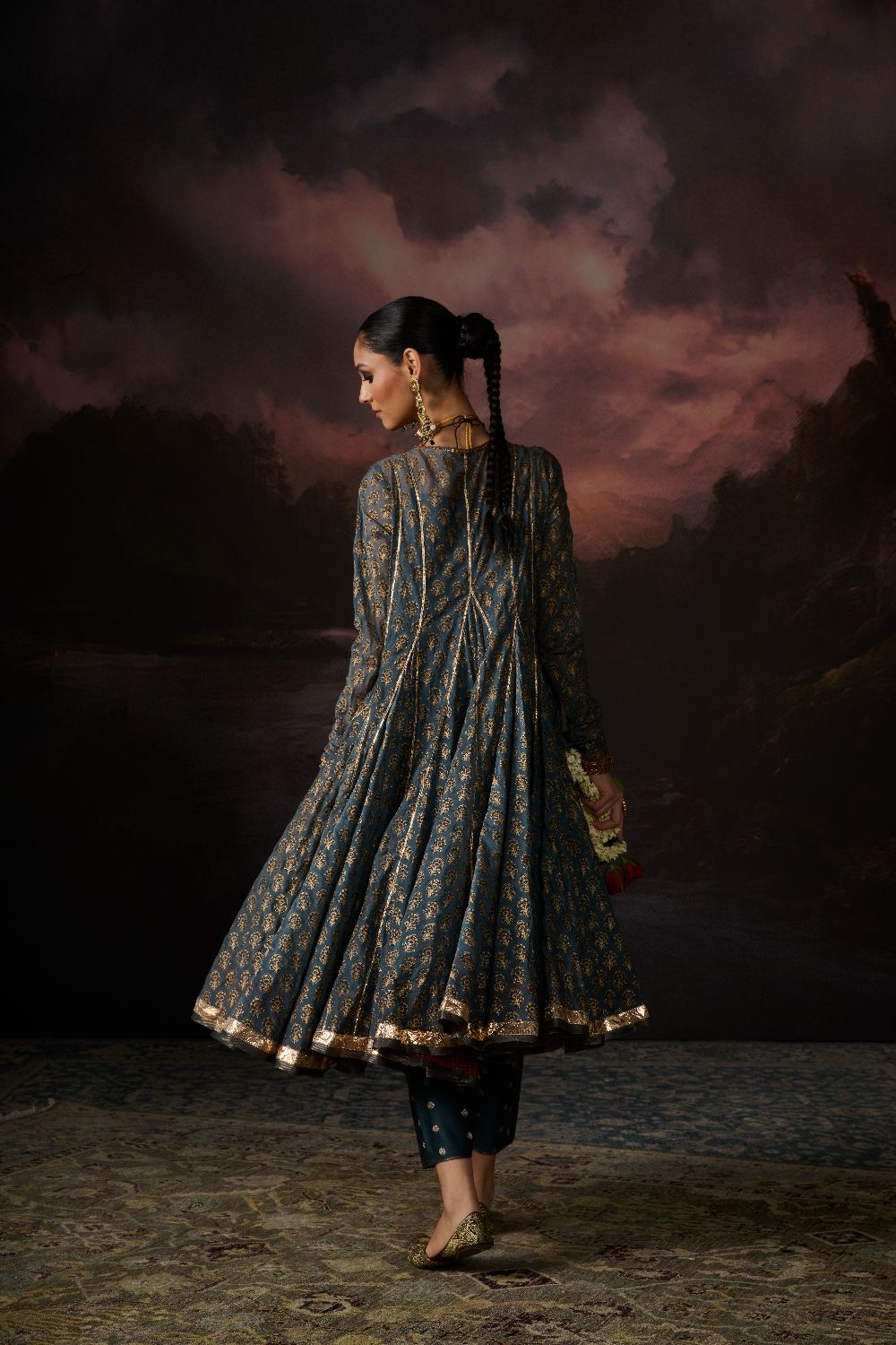 Cotton Cambric Hand Block Printed Salwar, Patched With Banarasi Chanderi Brocade at the Bottom.