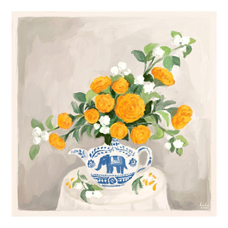Marigolds & Mogra Art Richa Kashelkar