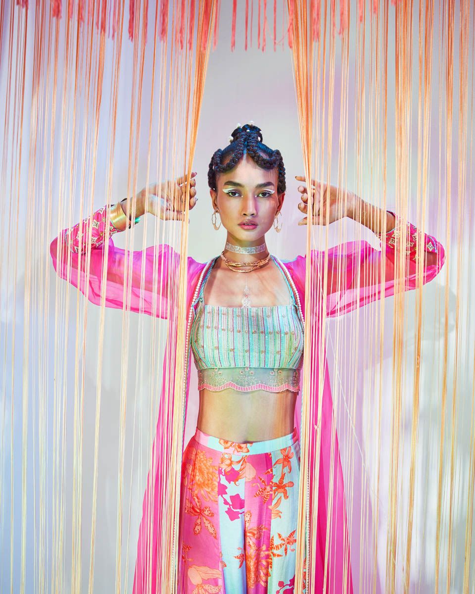 Their work is an ode to handcrafted Indian design — rooted in traditional embroidery techniques like zardozi, dabkaa, and fine threadwork, yet shaped into silhouettes that feel refreshingly contemporary. Clean cuts, relaxed forms, pure fabrics, and a distinctive palette come together to create pieces that travel seamlessly from India to Singapore and beyond.