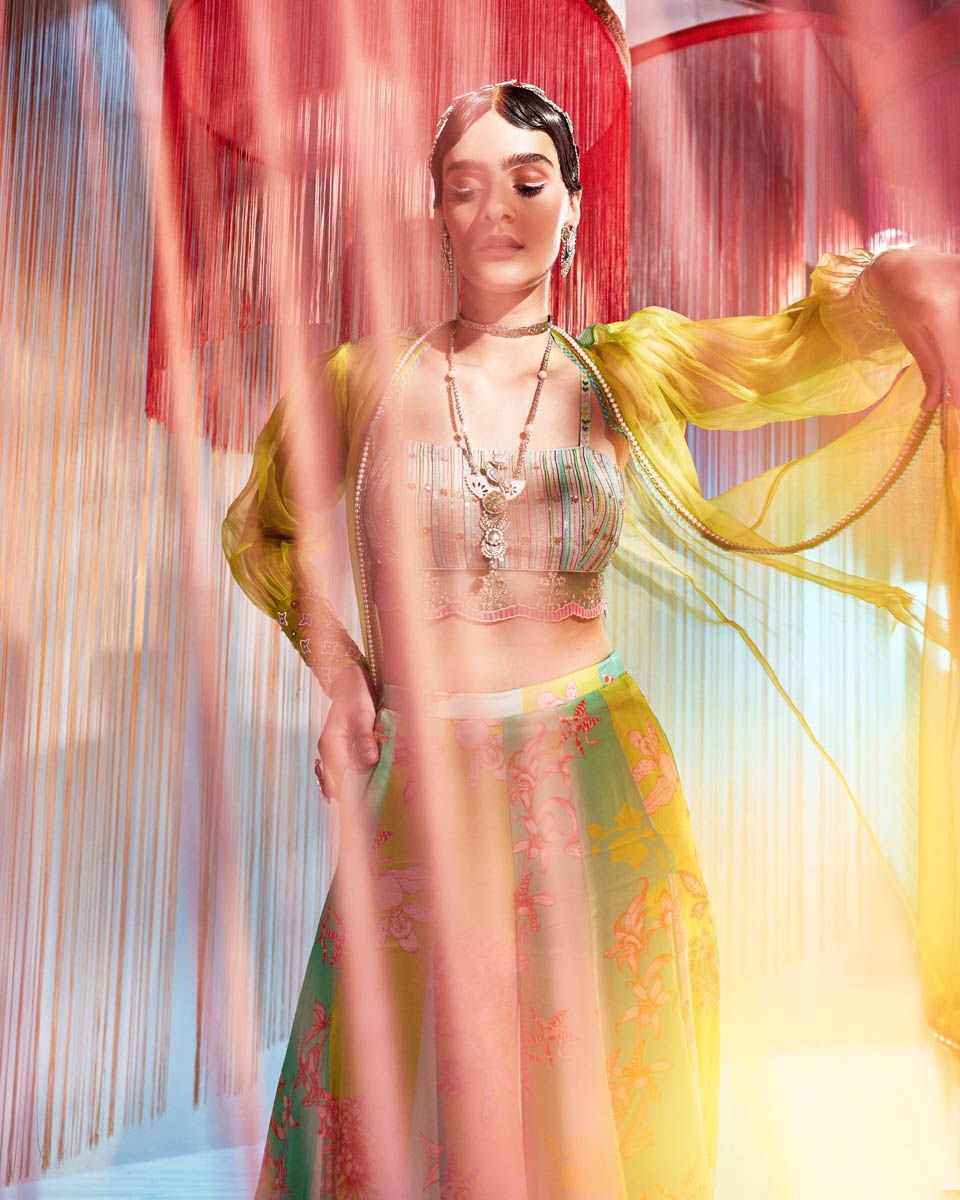 Trained at NIFT and NIFD, the sisters bring technical rigour to their craft: every garment is shaped with intention, from the drape of the fabric to the finesse of the motif. What defines RajiRamniq is this balance — expressive without excess, deeply Indian yet cosmopolitan in its sensibility.