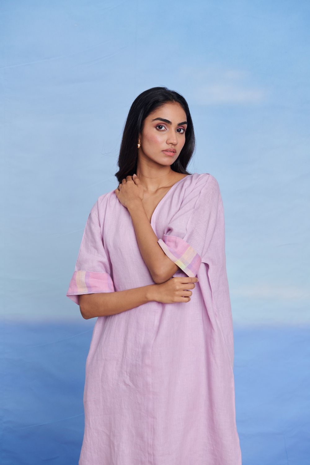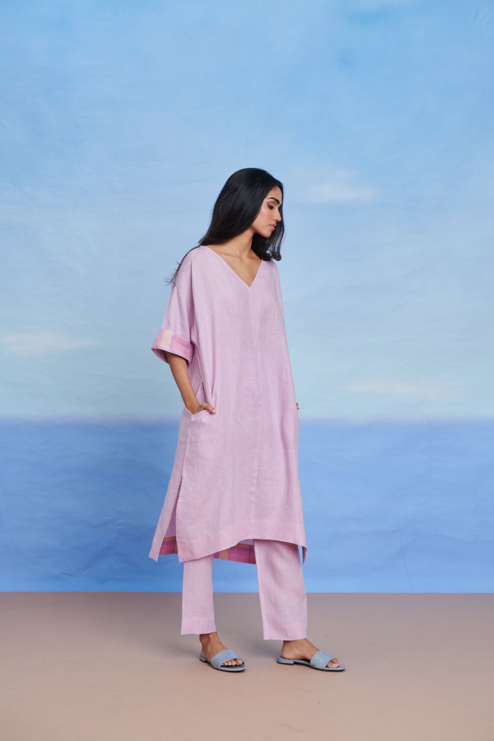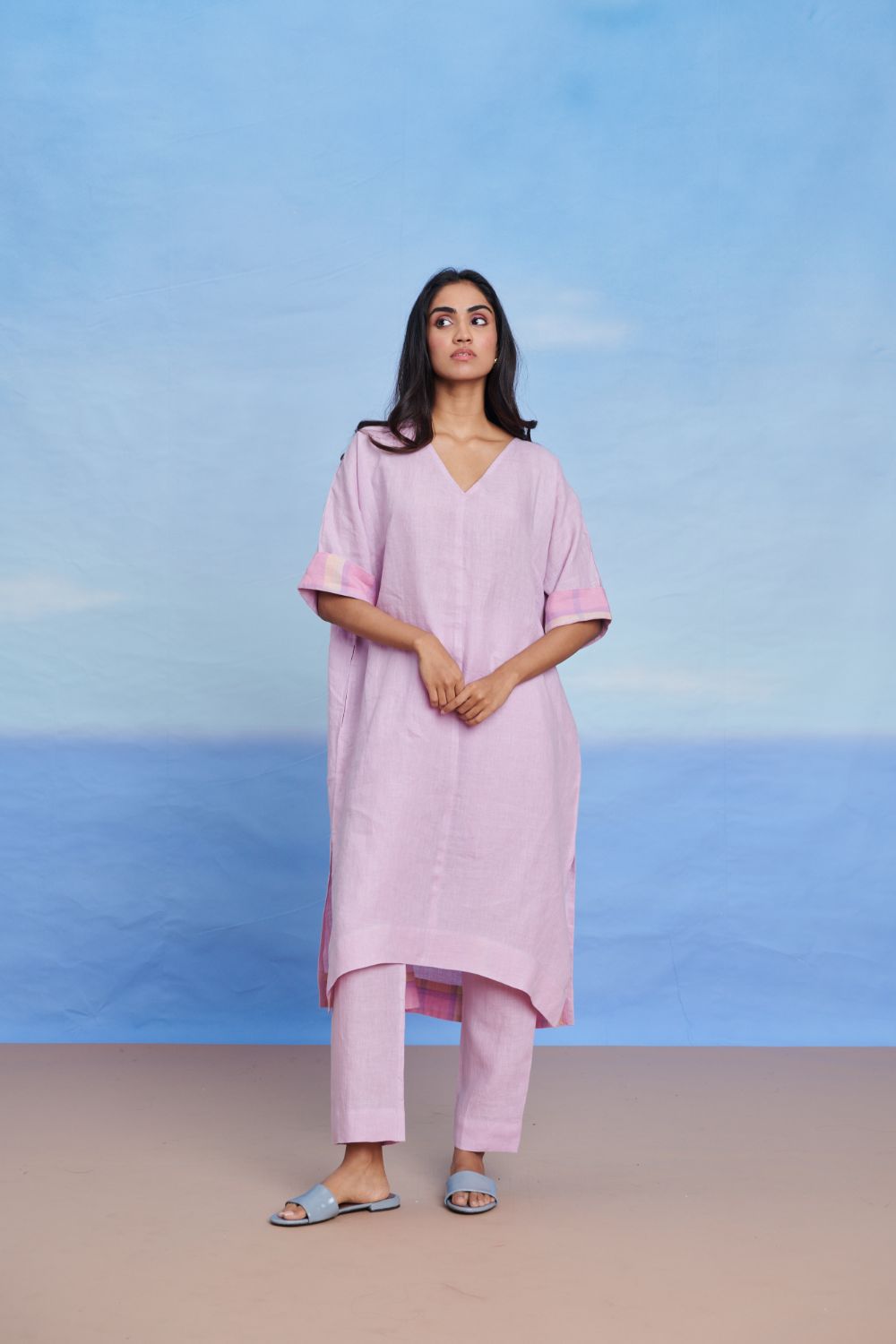 We can't get enough of the linen Dolman Kurta Set. A relaxed silhouette with slim pants in linen, enjoy the contrast hem details and slide your hands into the side-pockets to strike a pose this festive season. Here is the perfect outfit for long brunches, card parties and office get-togethers.