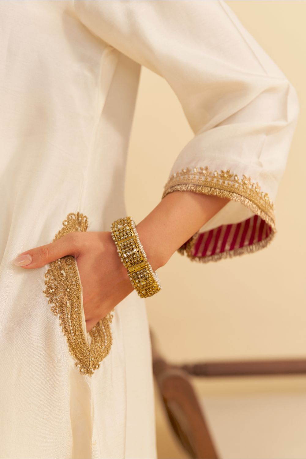 Sheetal brings back traditional embroideries and motifs, but with a contemporary lens. Her work never feels costume-like; instead, it feels lived-in, refined, and whisper-soft in its opulence.